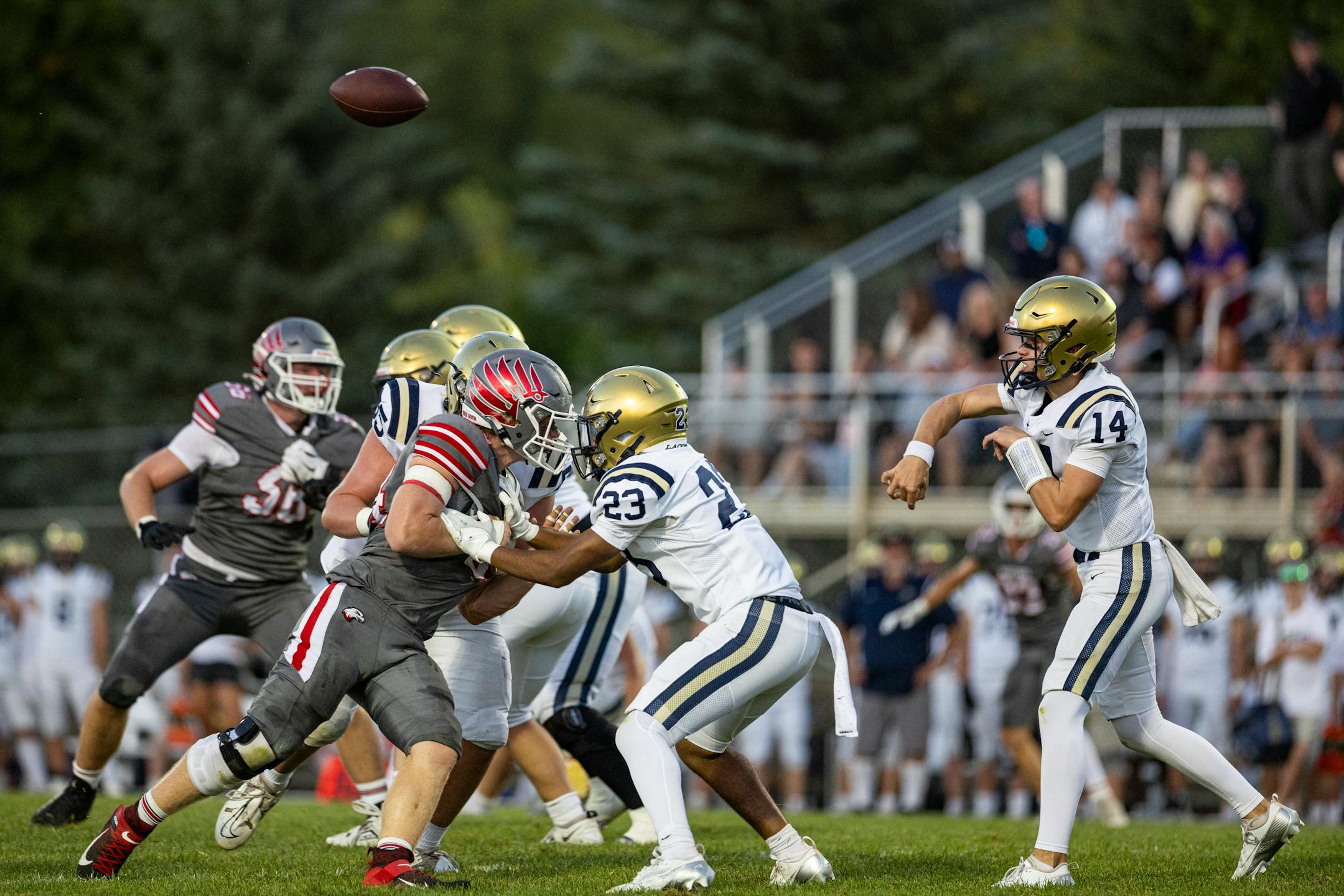 Abu Tarawallie, Providence Academy’s massive and talented defensive tackle, sat on the visitors’ bench in the immediate aftermath of the Lions’ convincing 14-3 victory over Mound Westonka on Friday.