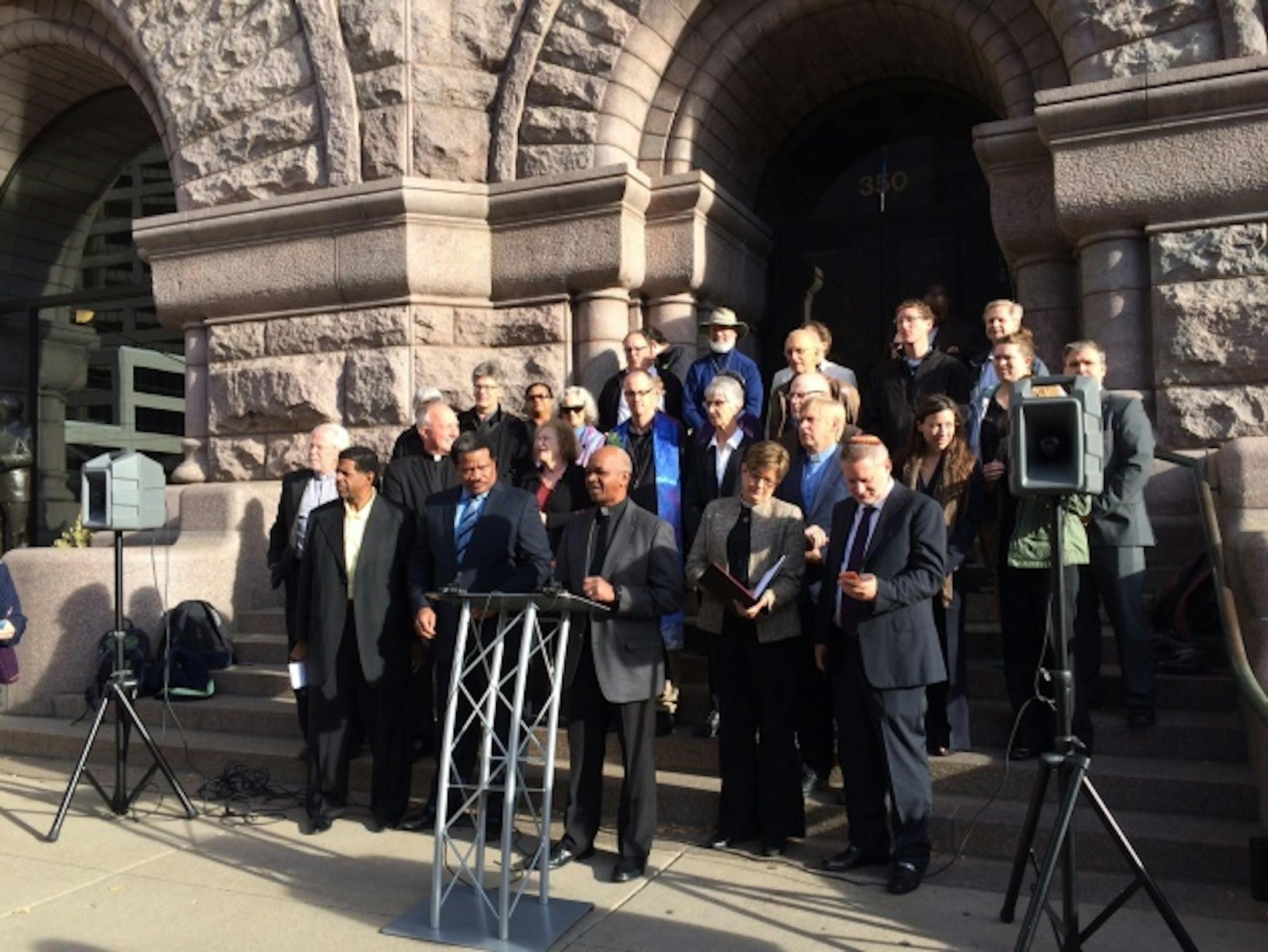 About 40 leaders of Minneapolis churches and synagogues stood on the steps of City Hall on Thursday and called on council members to pass a law that would give all workers the right to earn paid sick leave.