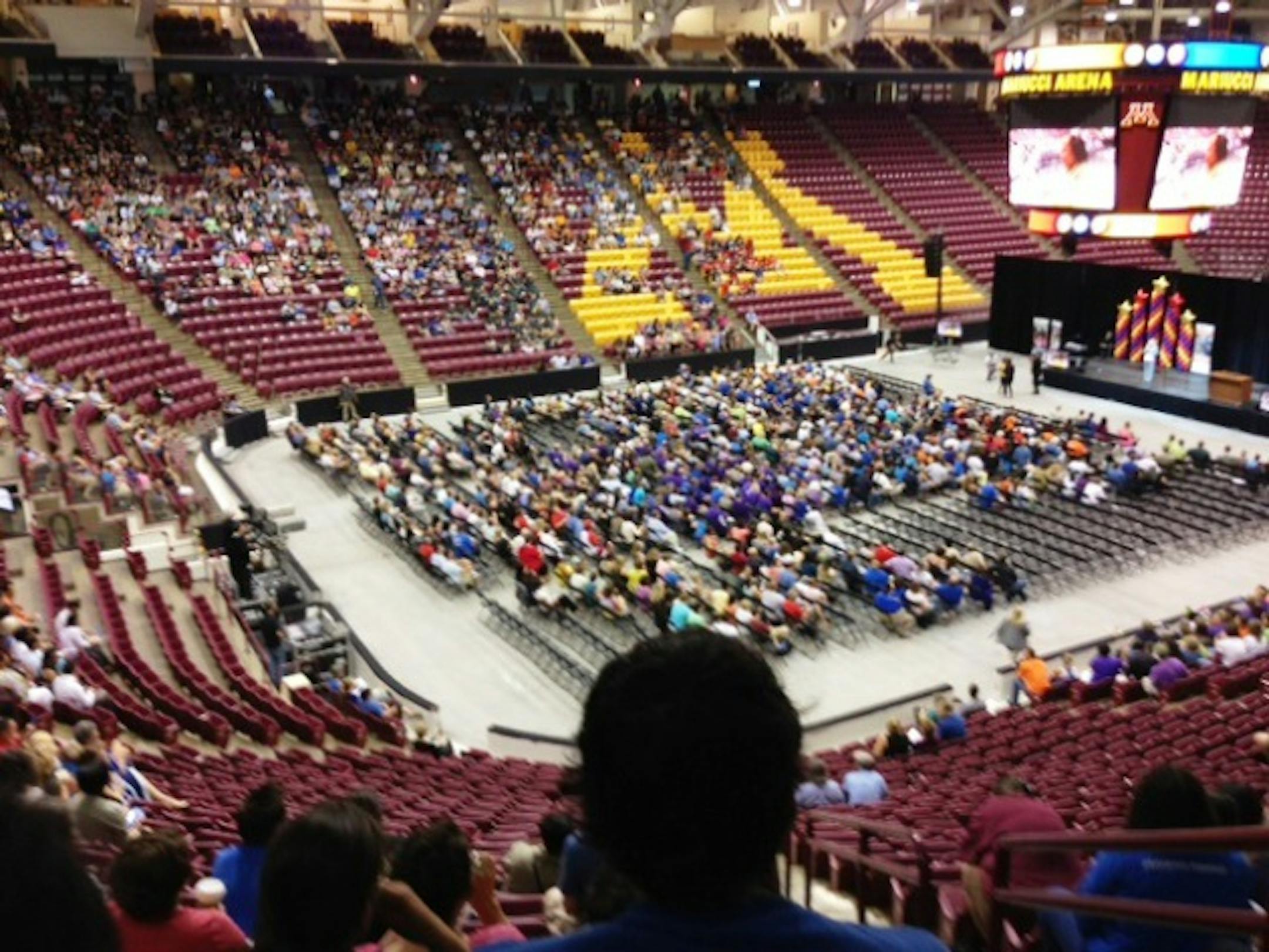 Several thousand employees ranging from cooks to bus drivers to clerks to faculty gathered at the University of Minnesota's Mariucci Arena on Tuesday for a back-to-school gathering. It served partly as a pep rally for the coming year and partly to lay out the administration's agenda.