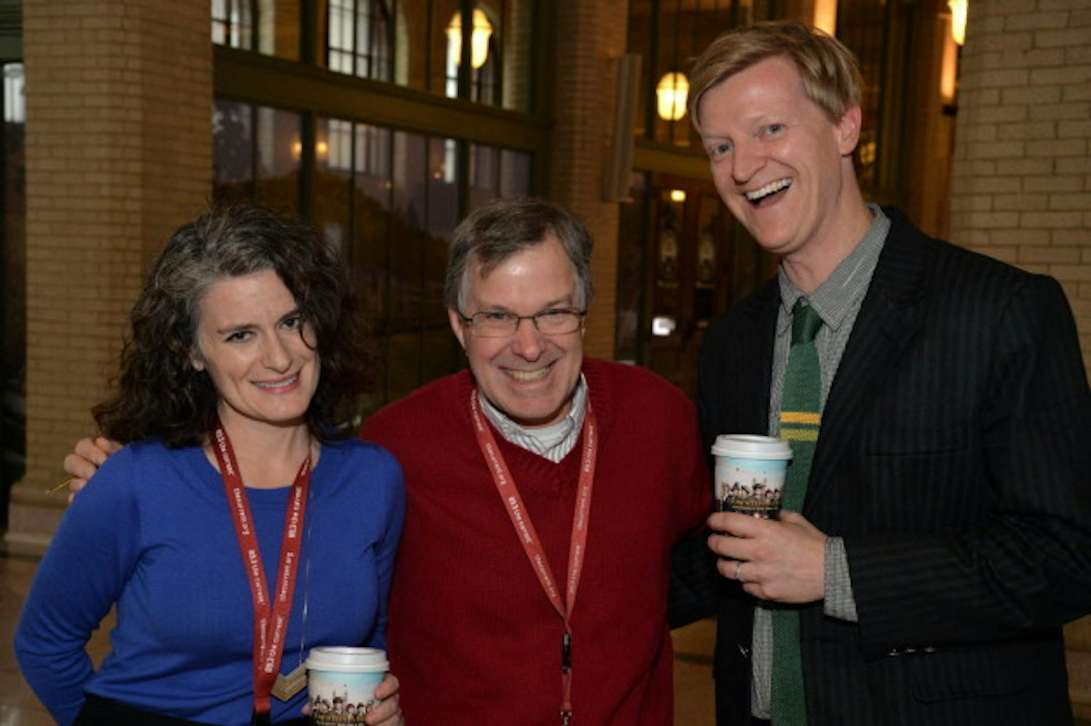 Bob Collins, center, is flanked by MPR colleagues Ali Lozoff and Jeff Kamin. (Photo by Bre McGee)