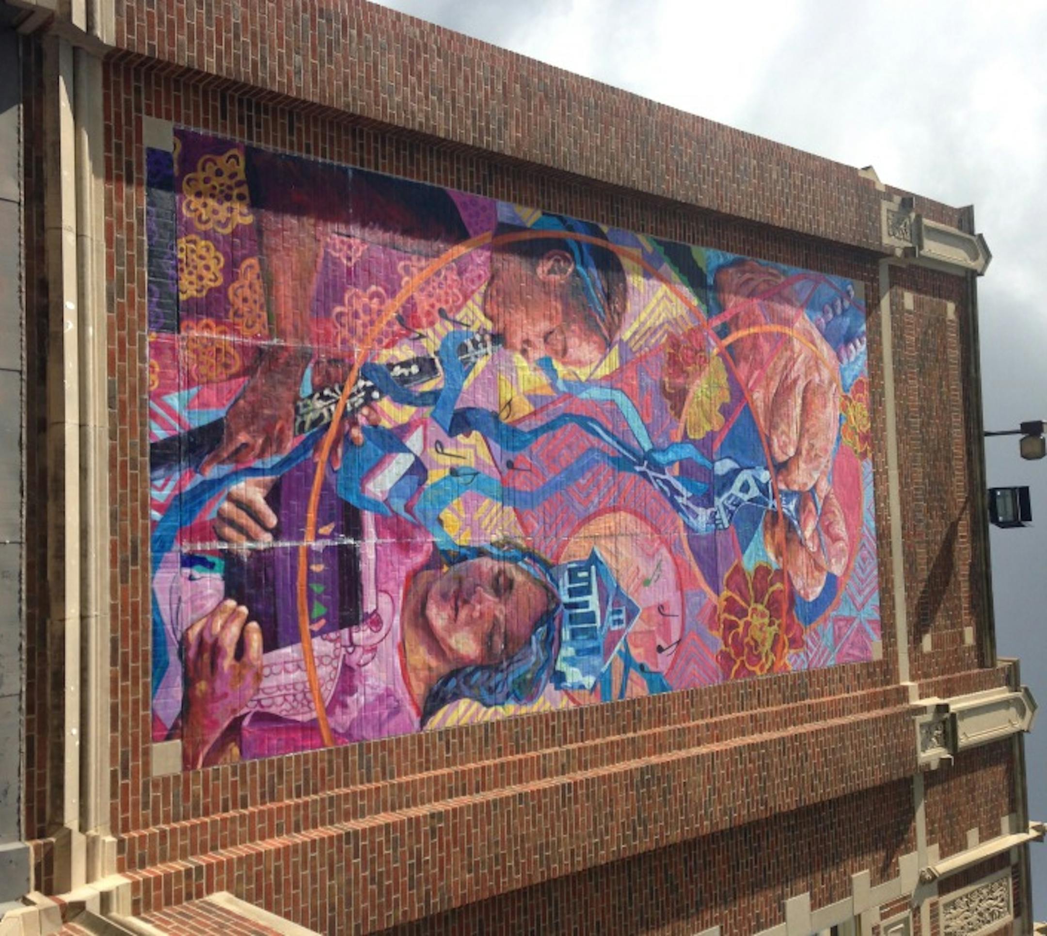 Here's a view of one of the four murals being attached to Folwell Performing Arts Magnet School, highlighted in a blog post earlier today. The murals are composed of individual 25-foot-square panels painted by community members.