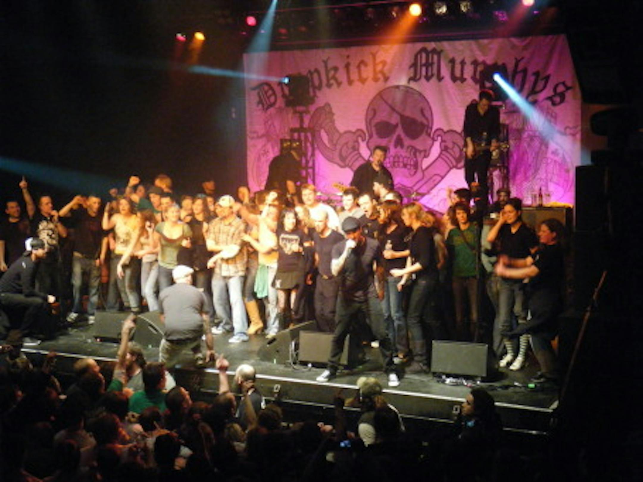 If your teenage daughter was among the many young women on stage last night at First Avenue with the Dropkick Murphys rowdily singing along to "Kiss Me, I'm Sh--faced" ("I'm soaked, I'm soiled, I'm brown in the trousers"), have no fear. There was something weirdly wholesome and sweet about the whole affair, the highlight of the Boston Celtic-punk band's latest pre-Patty's Day tour stop -- the rare time you'll see tattooed dudes pumping their fists along to mandolin, accordion and even fife playing.