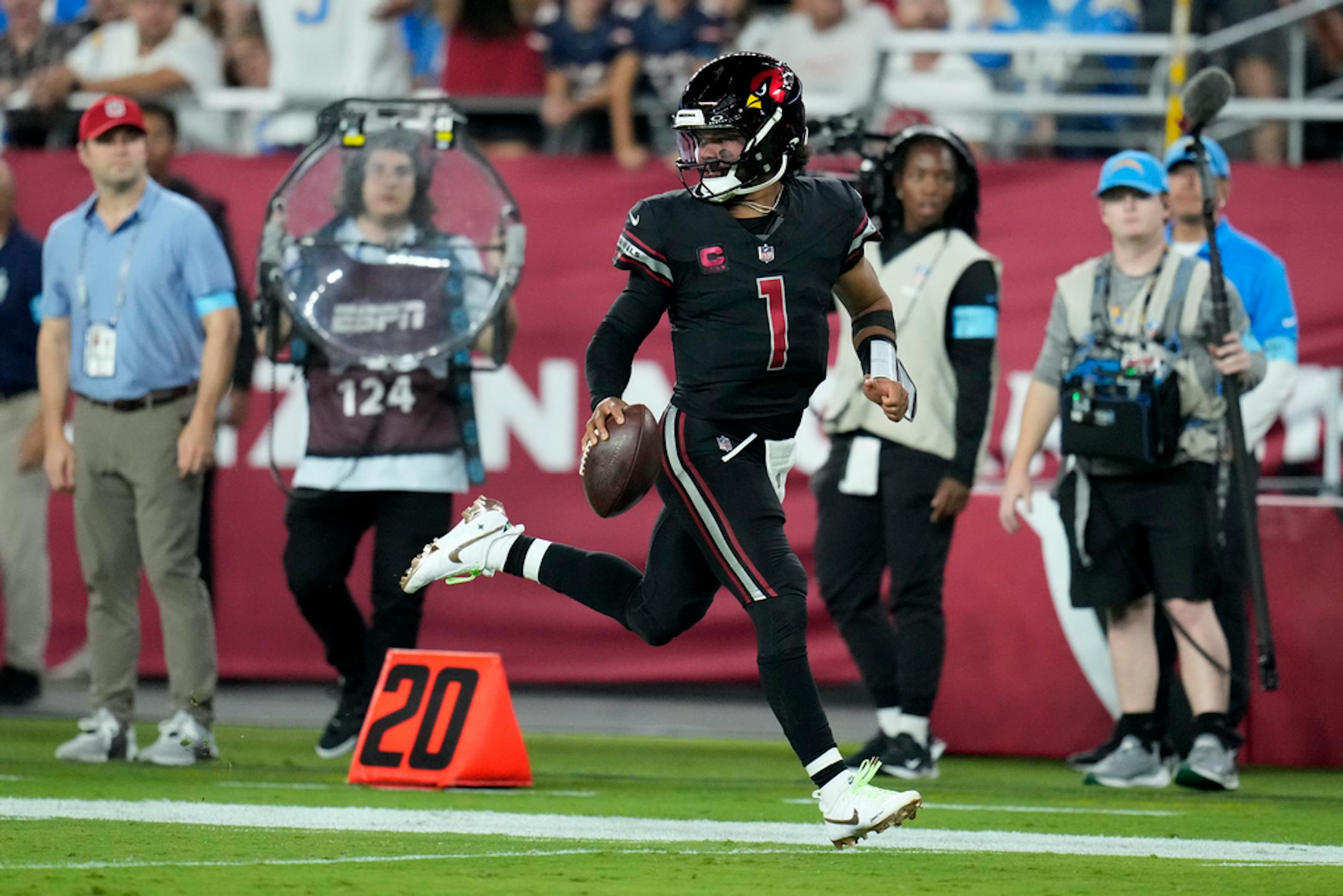 GLENDALE, Ariz. — Arizona's Kyler Murray rolled out to his left before turning on the jets, beating a Chargers defender to the sideline and then coasting for a spectacular 44-yard touchdown, casually holding the ball with one hand like it was a backyard game.