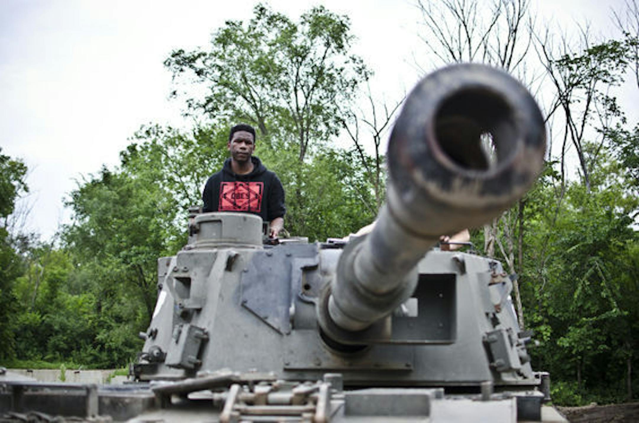 Rappers have a history of riding around in tanks in music videos. Typically, such a show of over-the-top bravado is reserved for millionaire rappers with big budgets. Safe to say, the crew behind The Tribe & Big Cats! are not multi-millionaires, nor are they trying to showcase their military might. They just want to have a little bit of fun. The Twin Cities crew has shot a stunning new video and it features a real-life military tank(!). For the song, "DMT Flow" (off the recently released "Space" album), the guys spent the day in Kasota, Minn., with a company called Drive A Tank. Apparently, it's one of the only places in North America where civilians can legally drive tanks. The Tribe & Big Cats! heard about the concept from a friend's grandma. In the video, rapper TruthBeTold rhymes for the camera as he barrels down country roads on top of a British war machine. The group's manager, Conrad Schoenleber, summed up the experience like this: "All in all, an awesome day of shooting guns and driving tanks." Watch (some language NSFW):