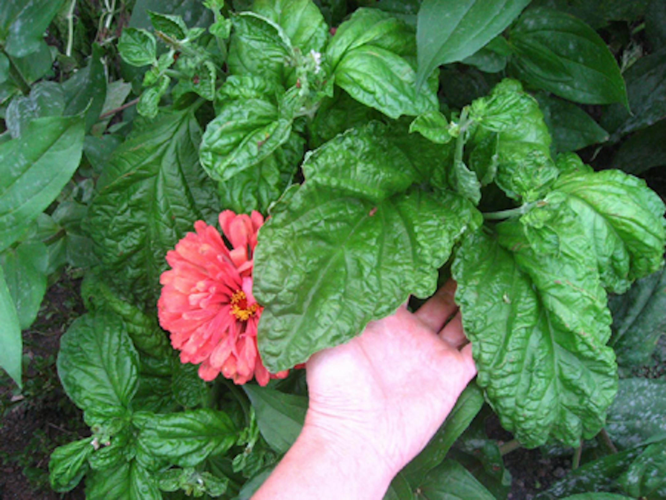 I found the seed packet. All it said was: "Sweet Basil, HERB." I did a little searching on the internet and found a variety called lettuce leaf basil, but its leaves topped out at 3 to 4 inches. My basil dwarfs lettuce leaf basil, so what kind of mutant basil do I have growing in my innocent garden? Did anyone else end up with giants in their gardens?