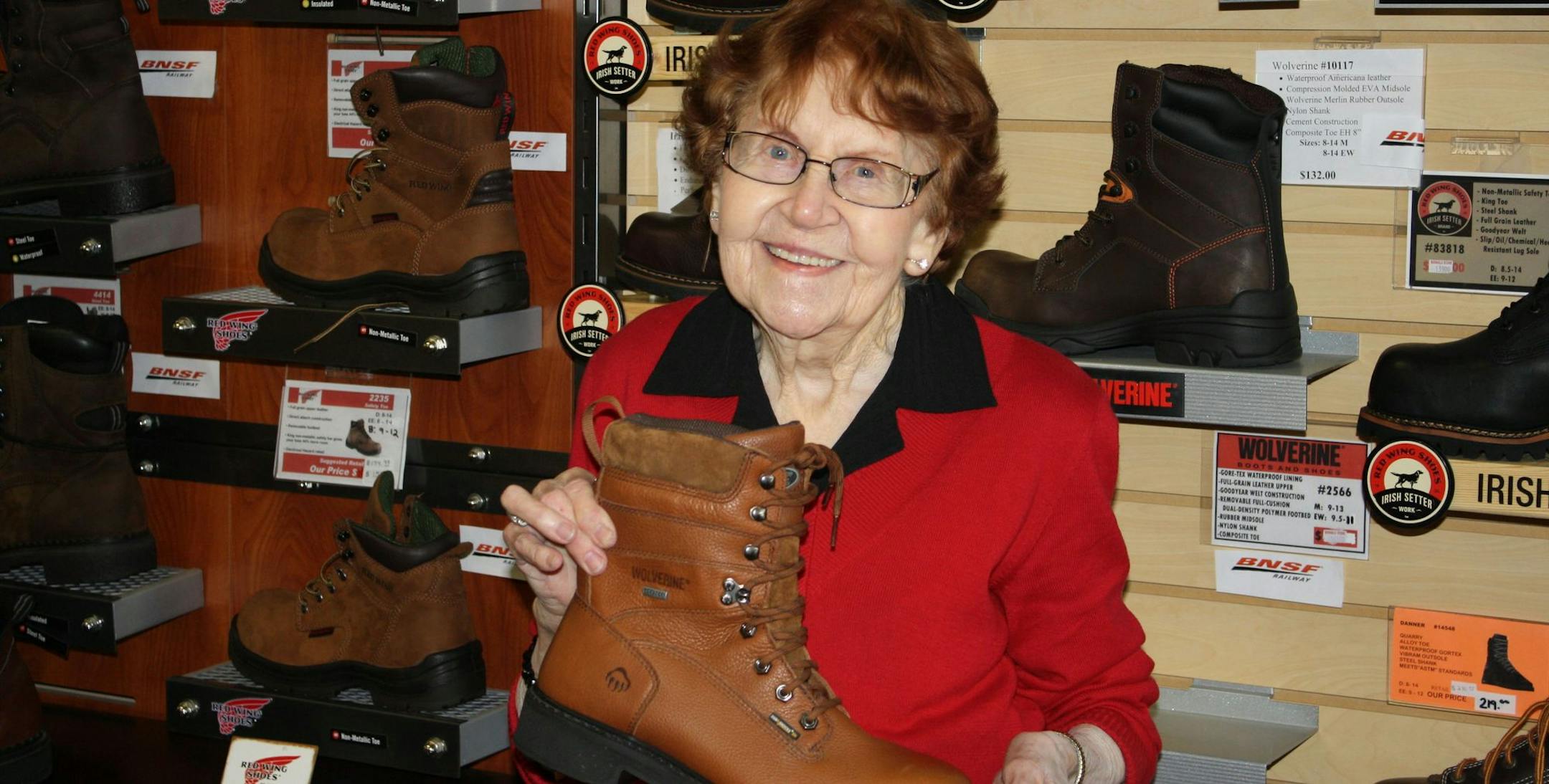 Olson's primary job through the years has been selling the work boots, hiking boots and athletic shoes that are Bermel's specialty. The store draws customers from the Twin Cities and beyond, with a worldwide mail order business in seconds and factory-refurbished used Red Wing boots.