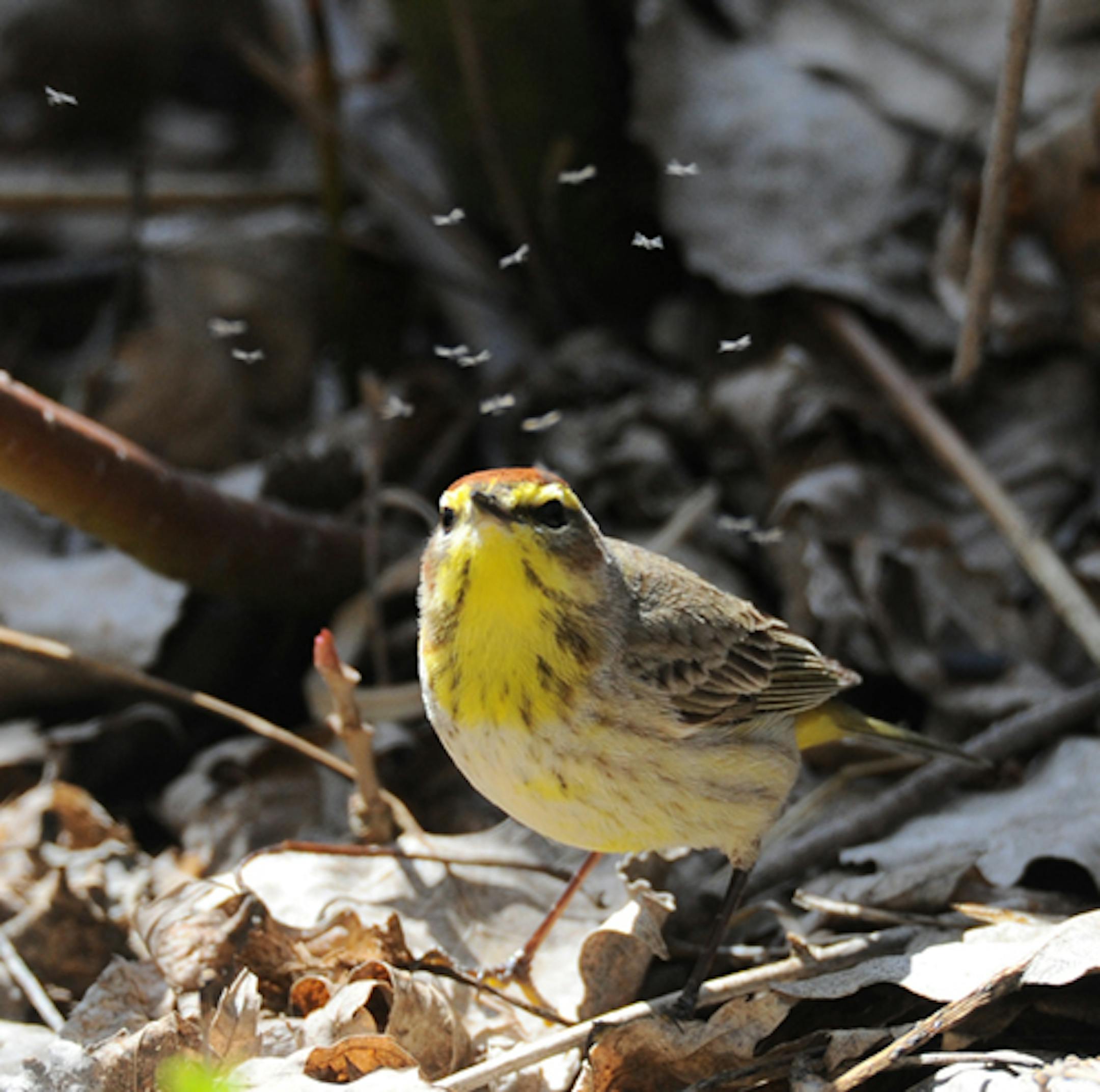 I tried to get the Palm Warbler as it jumped to grab a gnat, but just caught the bird's focus.