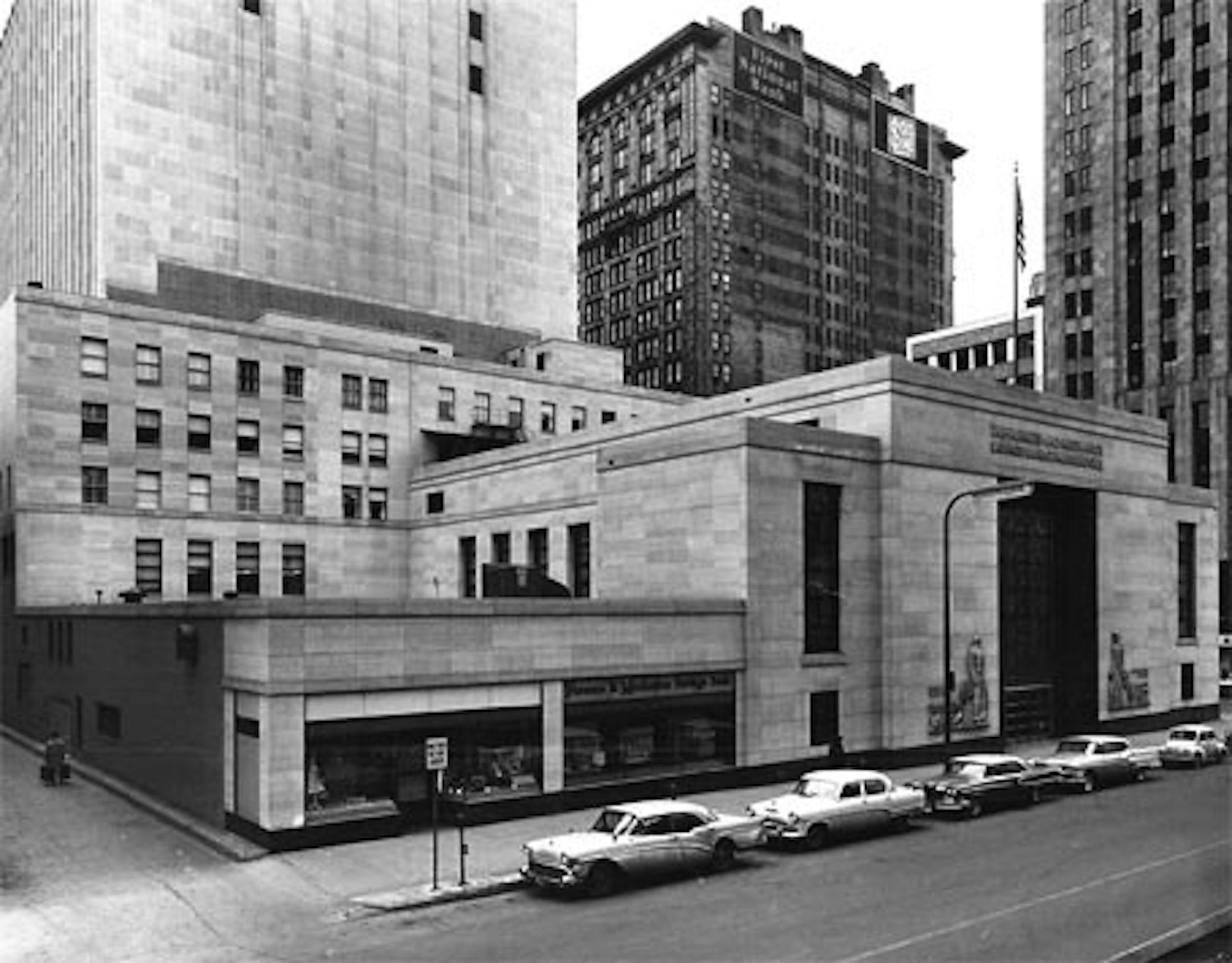 Almost everything is still there. The little white-edged building in the background middle was town down for a parking ramp, but everything survives. The detail below, however, mystified. I'm not a car expert, so I can't identify the model. Looks like a pug version of a Beetle. The hood's wrong for a Volks, right? The grill's wrong. Any ideas?
