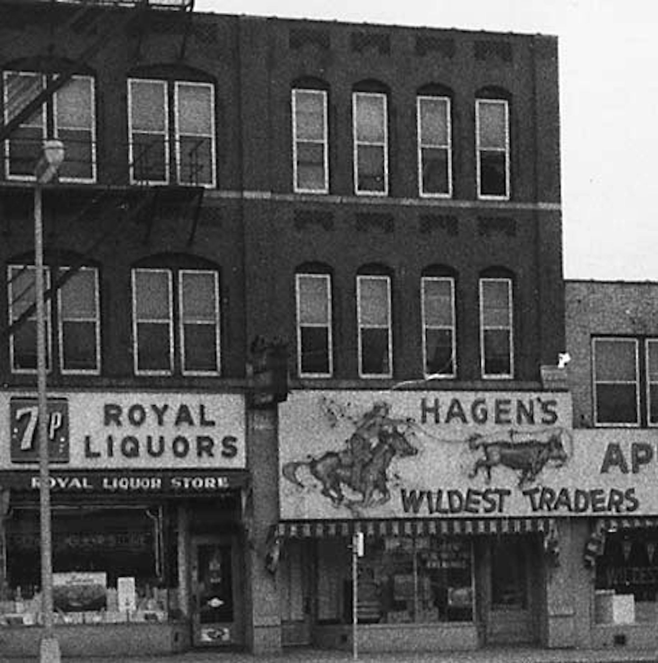 Wildest Traders! The neon sign was animated - the cowboy lassoed the steer over and over again, all night long, reminding you of the natural link between Old West cattle-wranglers and appliance-related retail sales. Always wanted to see someone drag a washing machine out of the store with a rope, but never happened. The sign fell dark years before the store disappeared, but it was saved and moved to a bar nearby.