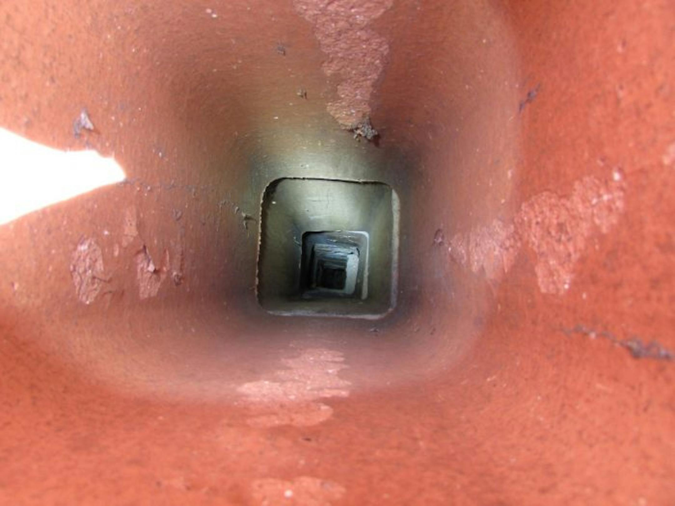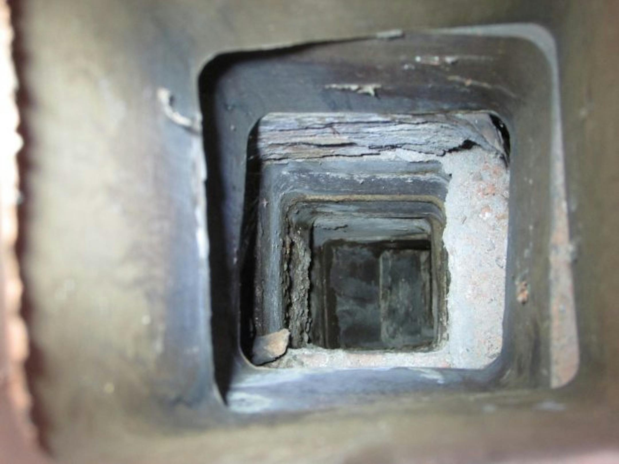After the first three clay tiles, there is nothing. Just the chimney walls. This is a major problem, making the chimney unsafe for use.