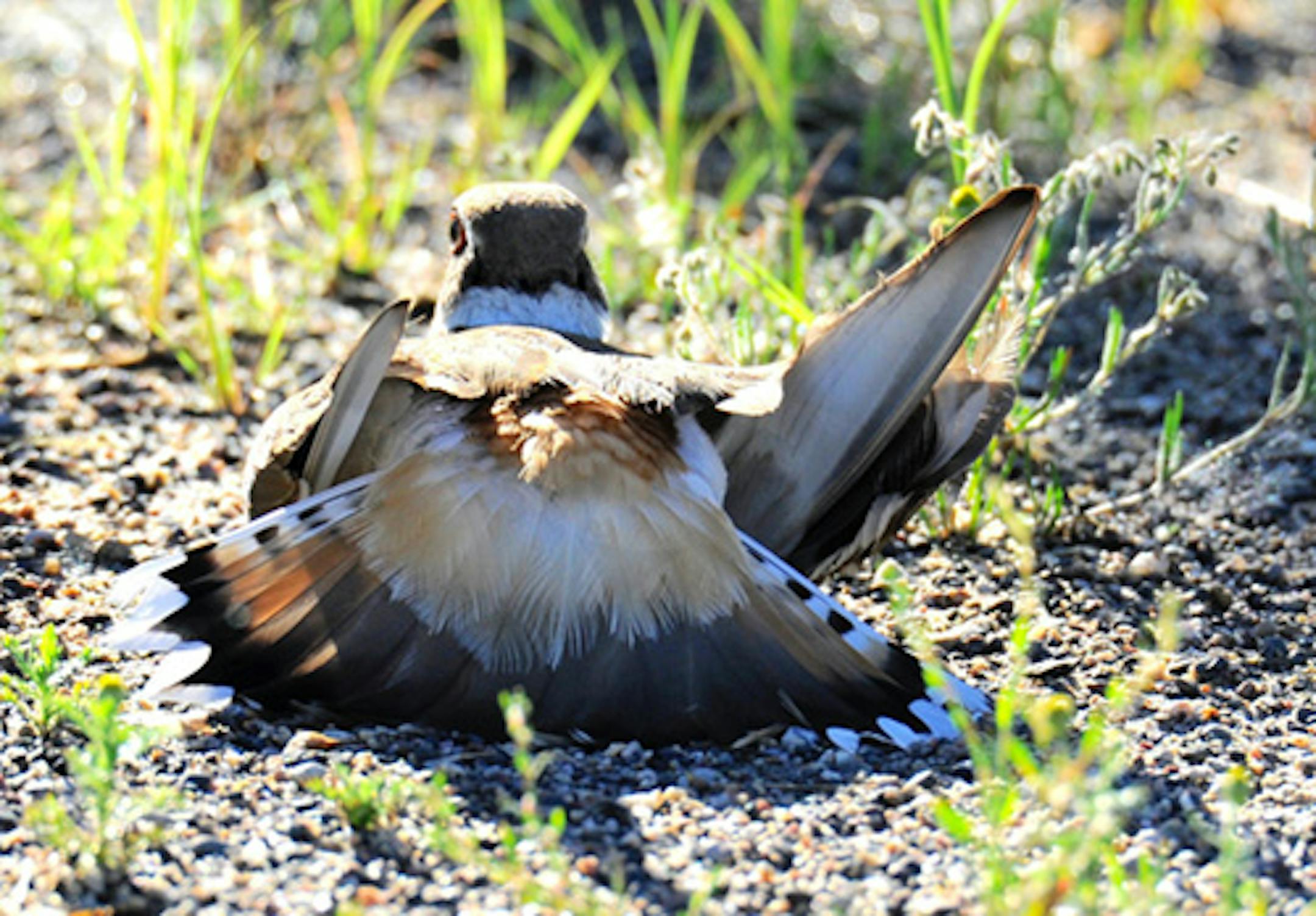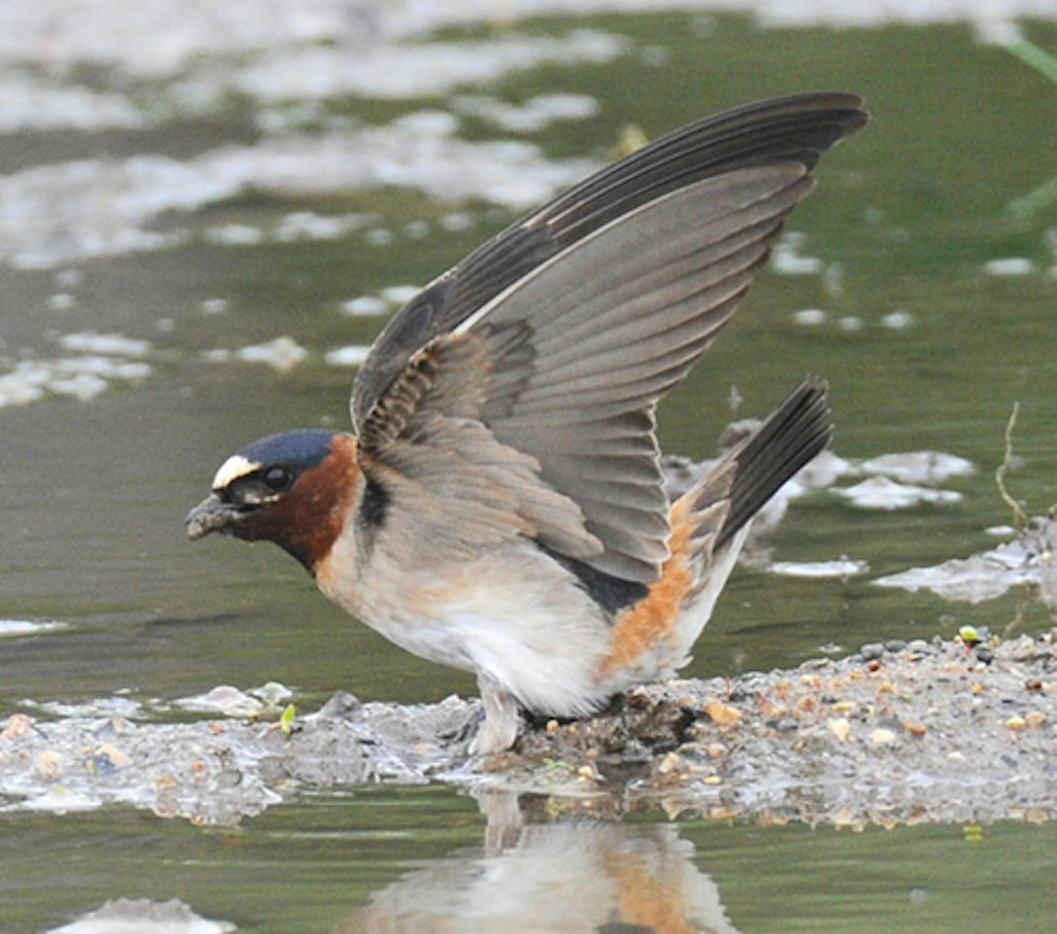 A morning spent touring neighborhood birding spots — Killdeer mating the day before the female offered her broken-wing distraction display, meant to lure me away from her nest. If she had a nest, that was quick. A male Mourning Dove was giving a courtship display, tail fanned, to a potential mate. Cliff Swallows were collecting dabs of mud for construction of their gourd-like nests. European Starlings had fledged this juvenile, its plumage most unlike that of adults.
