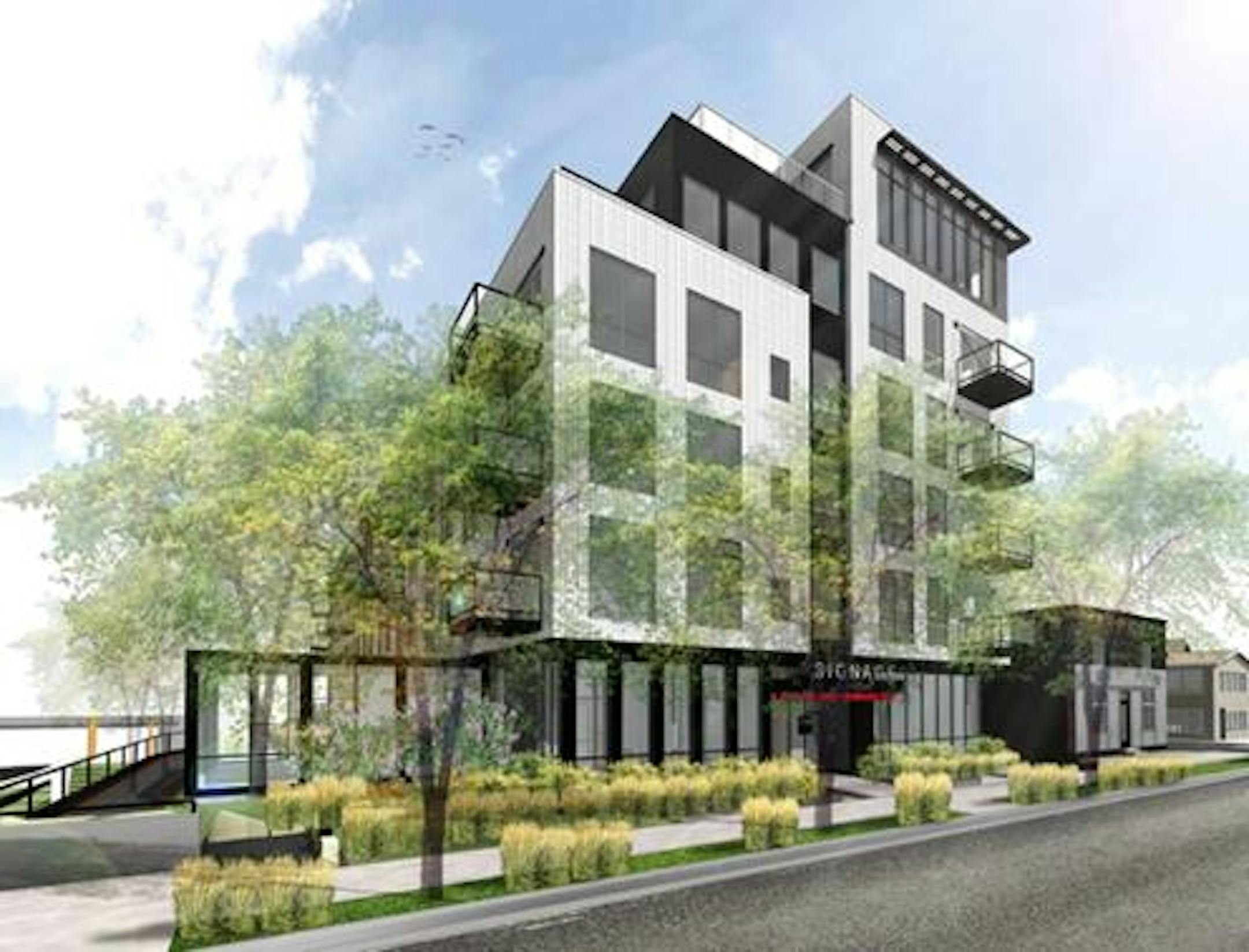 The building will have 96 parking stalls in two underground levels. The main entrance for the residences would be along Harriet Avenue S. and the developer would create a pedestrian path, which they have dubbed the "Philosopher's Walk," that would be open to the public from dawn to dusk.