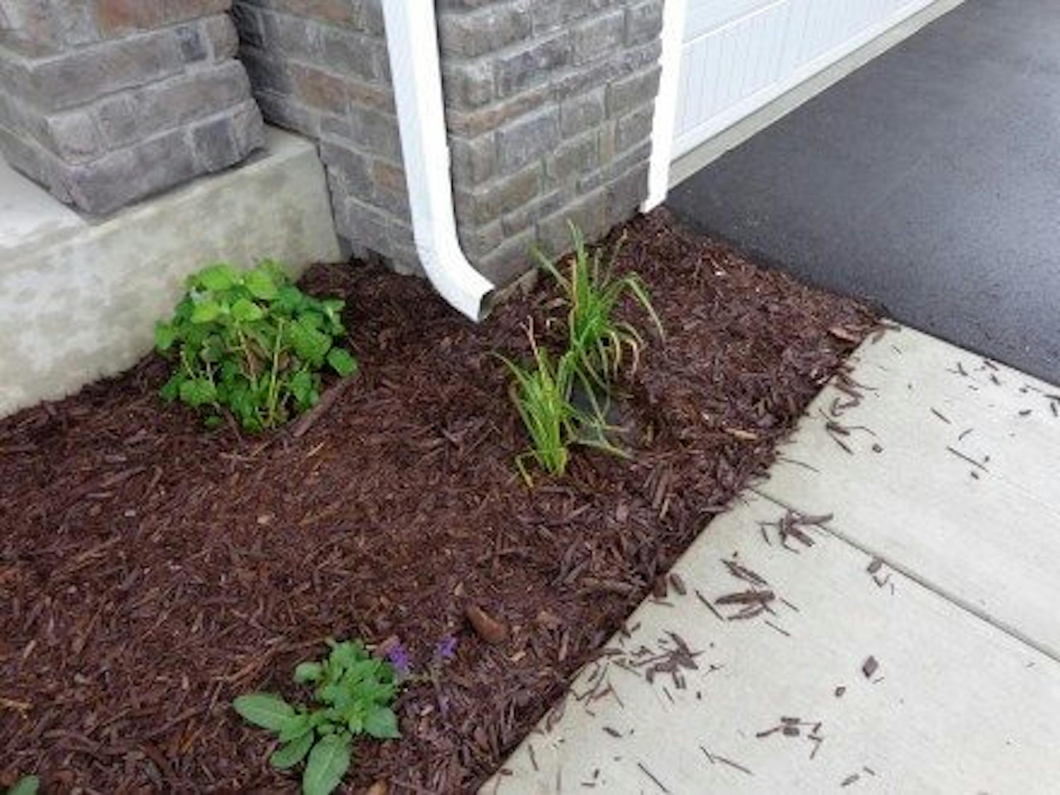 After a decent storm this will be a big mess. This was a new construction home in Eden Prairie with nearly a seven figure price tag... and that's how they dealt with the downspout. In my opinion, the only acceptable fix for this situation is to install a yard drain with a receptor for the downspout; the same thing I blogged about last week. This could have been done very easily with about $5 worth of material before the walkway was poured, but now it's going to be a much bigger project.