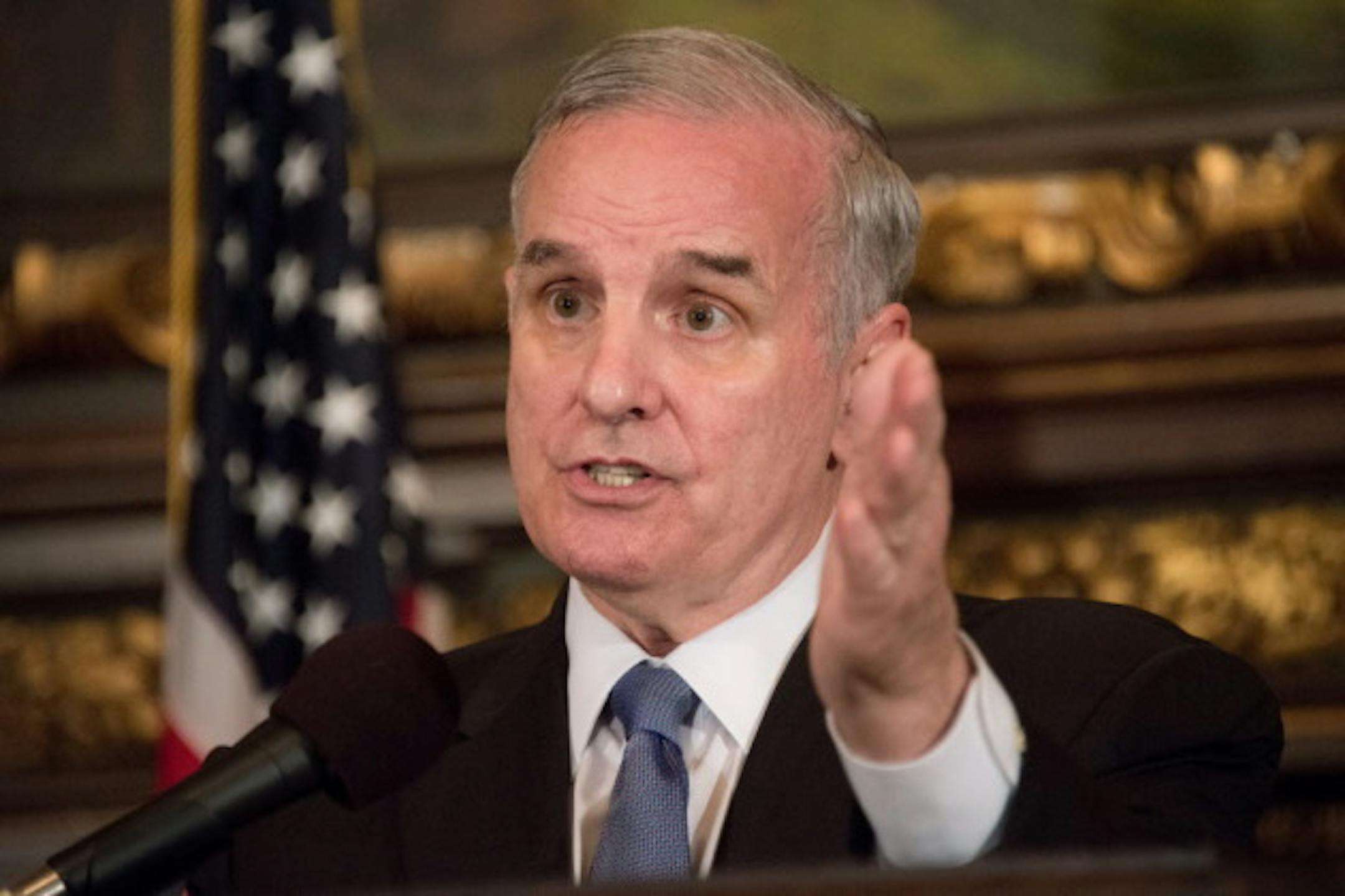 Above: The governor speaking at the Capitol Tuesday/Star Tribune photo by Glen Stubbe