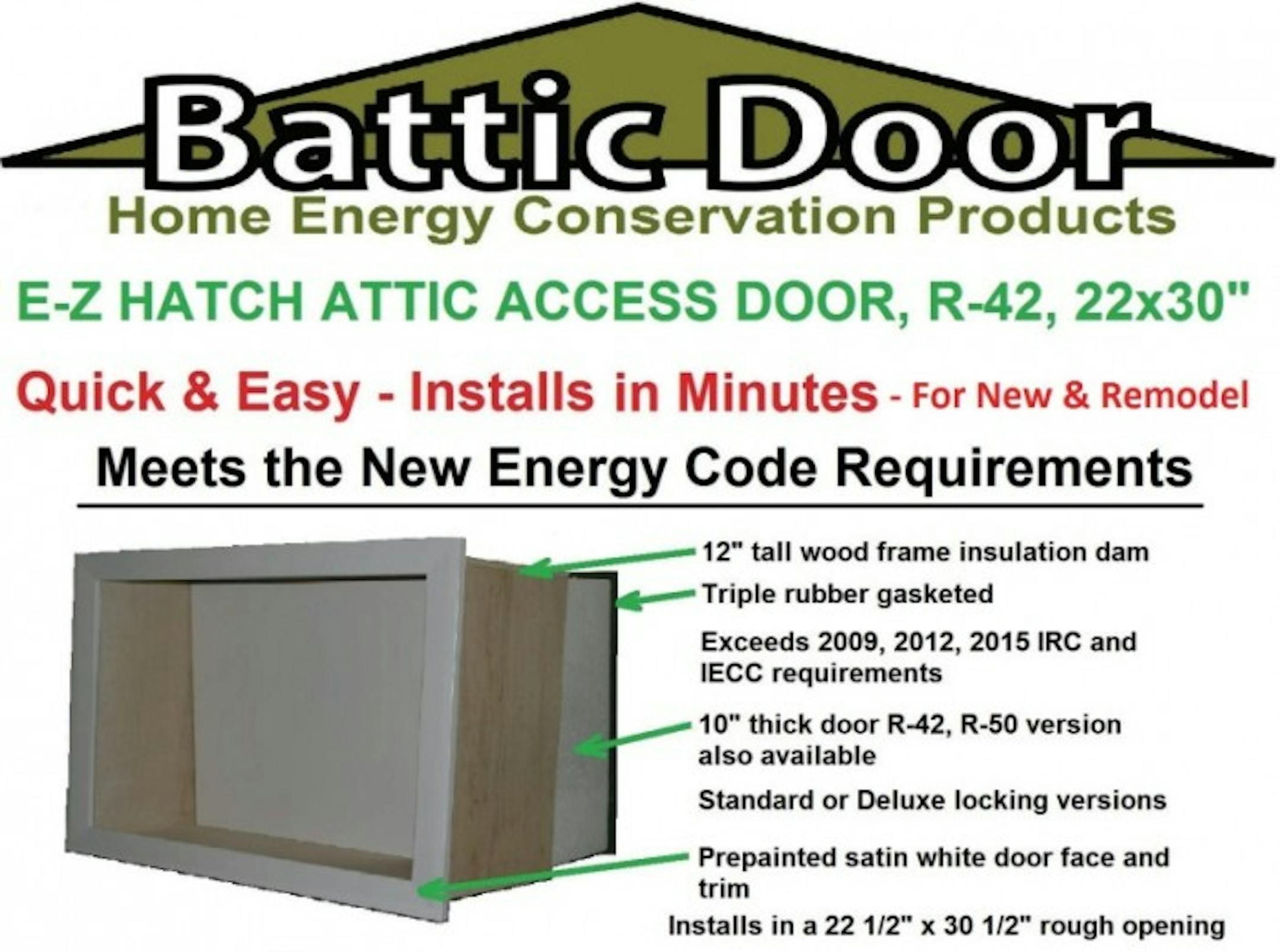 Another similar product is the Battic Door E-Z Hatch Attic Access Door, which sells for $200 or $250 for the R-42 or R-50. I haven't seen any of these in person, but I like their style.