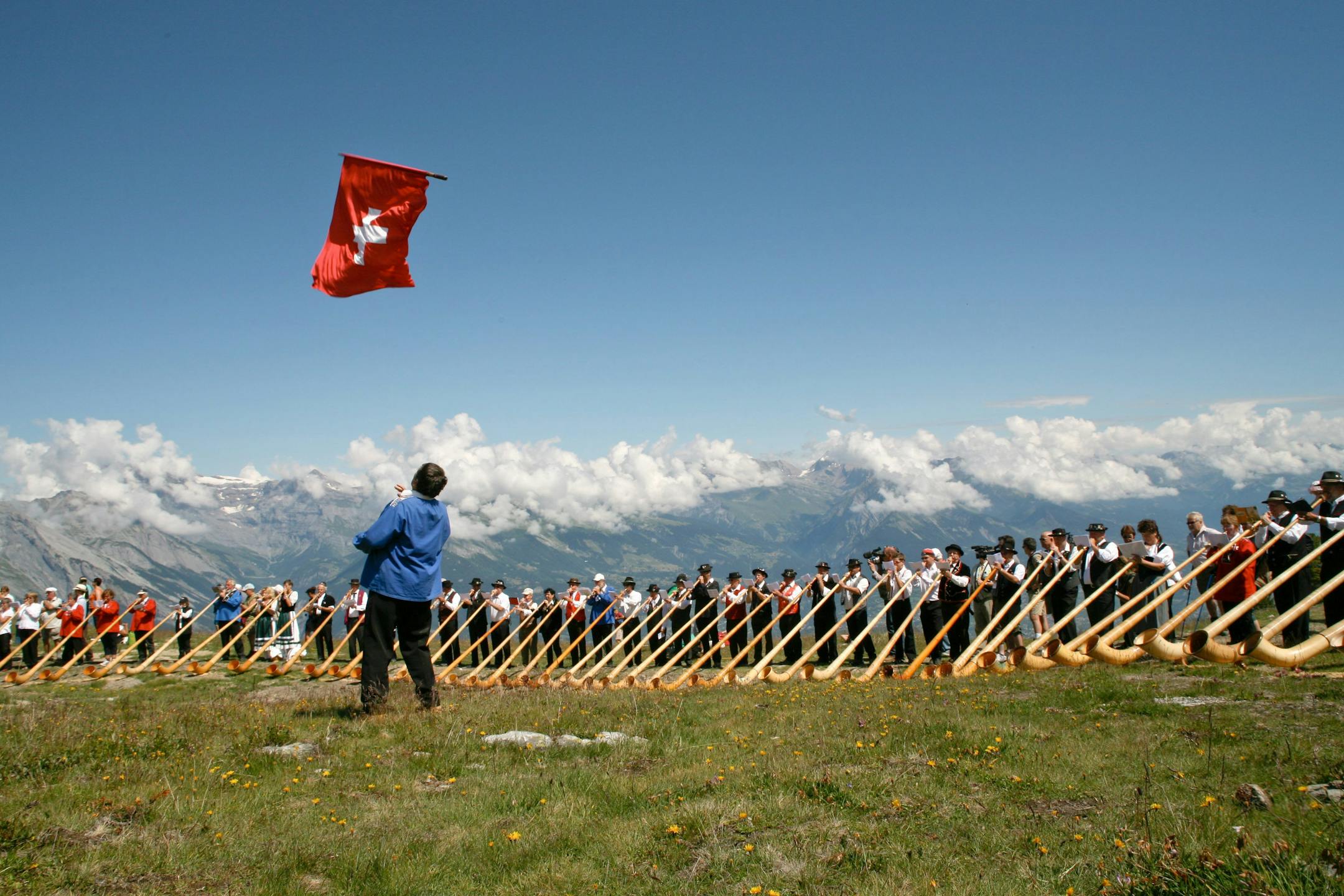 On July 22 at Tracouet, Switzerland, 100 alphorn players gathered for the 22nd International Alphorn Festival, Yahoo! News reported. (You know alphorns: Think Ricola commercials.) The competitors were judged on interpretation, musicality, accuracy and rhythm. "It's easy to play but difficult to play it well," said Marcel Henchoz, 85, one of the participants. He was joined by players from France, Germany, America and Canada. Adolf Zobrist, 58, from Brienz, Switzerland, took the title for the fourth time. "It's my hobby and it's my passion. I've been playing since I was 12," Zobrist said. "It's the sound of the mountains."