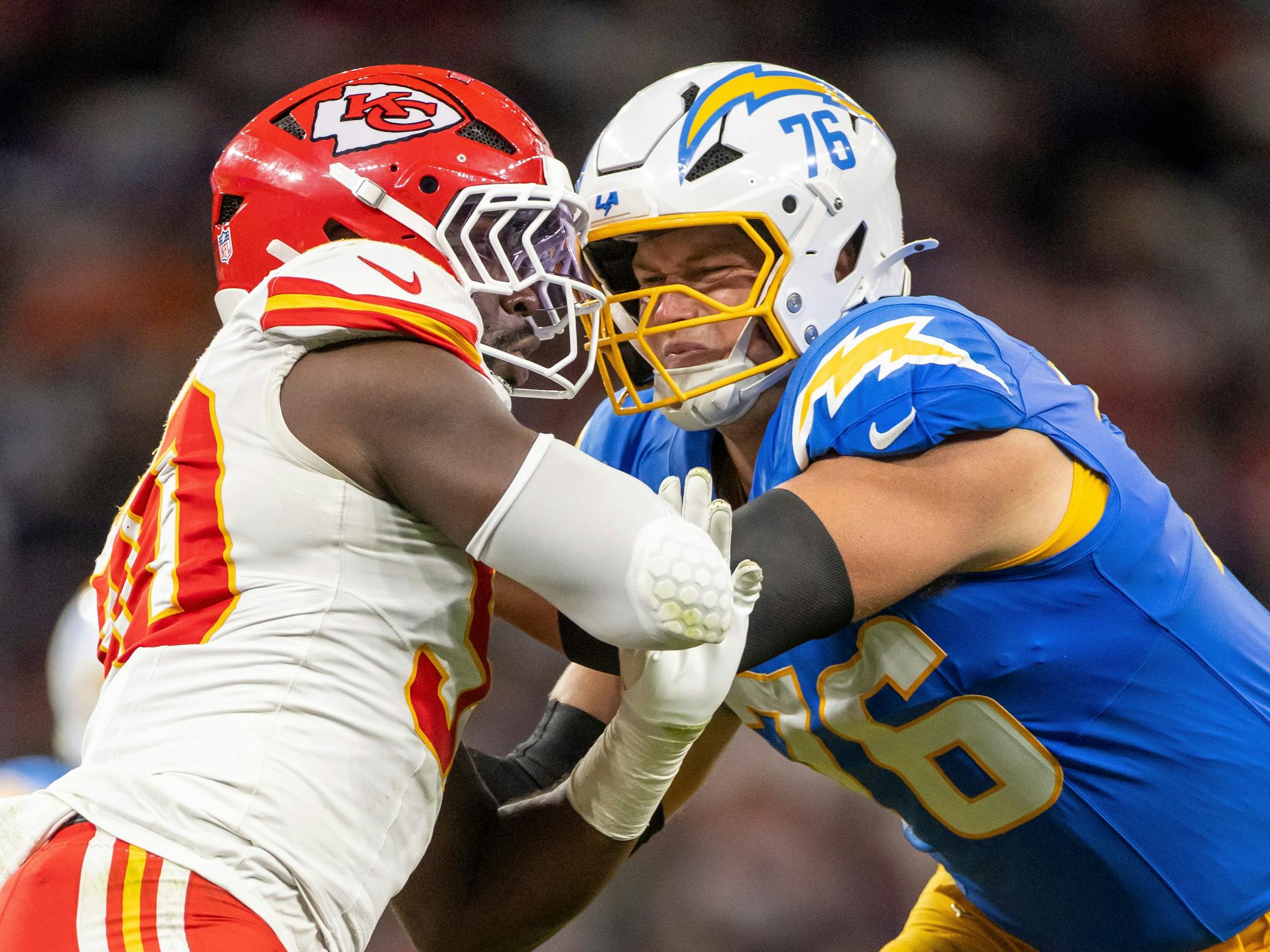 Jim Harbaugh has put football’s best division, the AFC West, on notice. A week after beating the nine-time defending champion Chiefs in Brazil, Harbaugh’s Chargers head to Vegas (1-0) with a chance to become the NFL’s first team to start 2-0 in its division. As always with Harbaugh, everything starts up front. When left tackle Rashawn Slater went down for the season, Minnesota native Joe Alt, the fifth overall pick a year ago, was moved from right tackle to his more natural spot. When Patrick Mahomes closed to within two points in the fourth quarter, Harbaugh’s front five — including 6-7, 363-pound former Eagle Mekhi Becton at right guard — grabbed hold of the game with an 11-play, 74-yard touchdown drive that took 7:02. When Kansas City later got within one score, the Chargers got two more first downs to keep Mahomes on the sideline as Justin Herbert did his first-down victory slide on third-and-14.