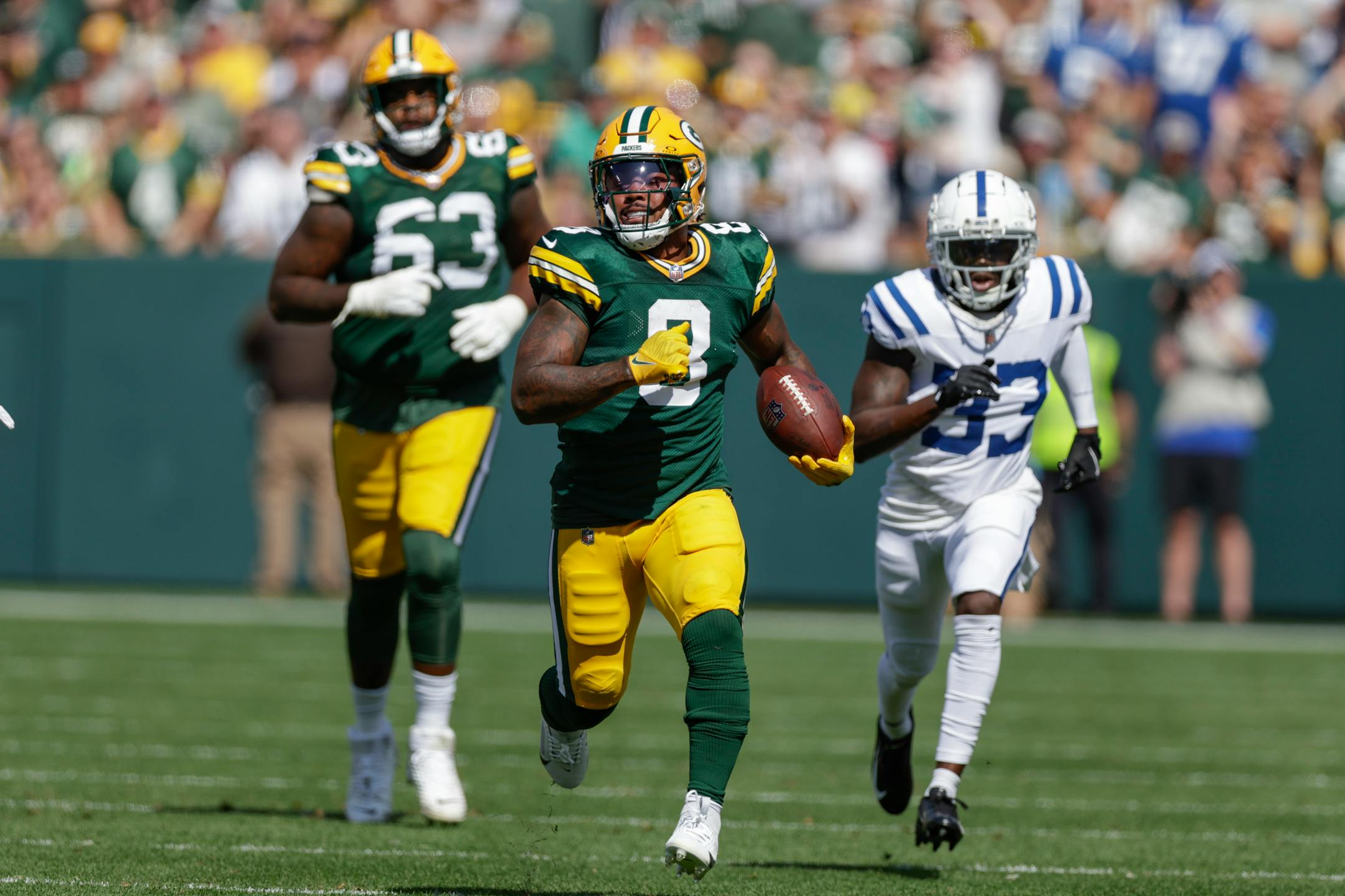 In Green Bay, it was no Jordan Love, no problem in Week 2. The 53 rushing attempts in the win over the Colts were the most the Packers have had in a game since they ran 54 times in a 10-10 tie with the Vikings on Nov. 26, 1978. The Packers had 164 yards rushing in the first quarter, their most since 1985; 237 yards rushing at the half, their most since 1978; and 261 for the game, their most since 2003.