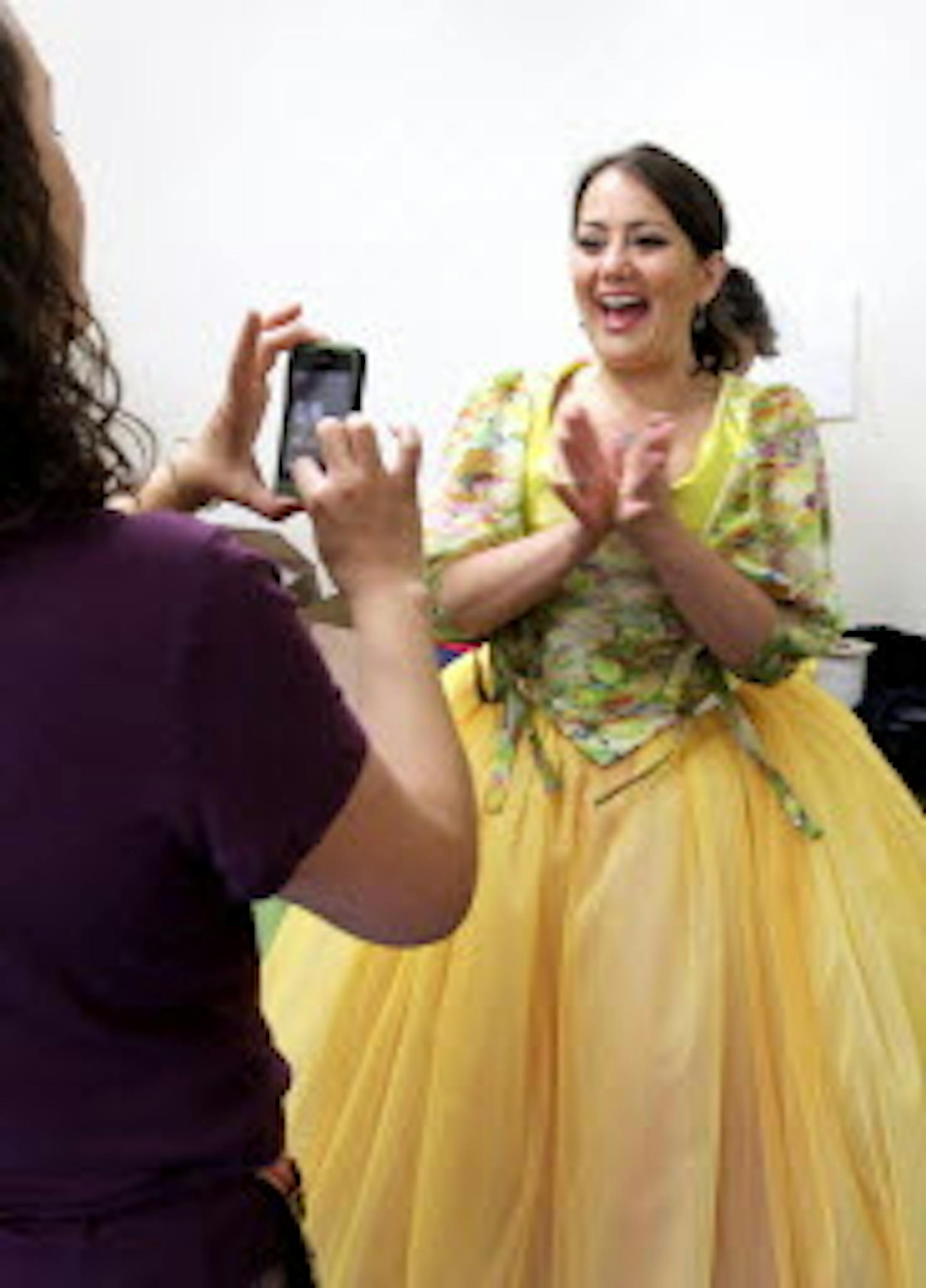 Heather Johnson, being fitted last summer for Mill City Opera's "The Barber of Seville."/photo by Courtney Perry.