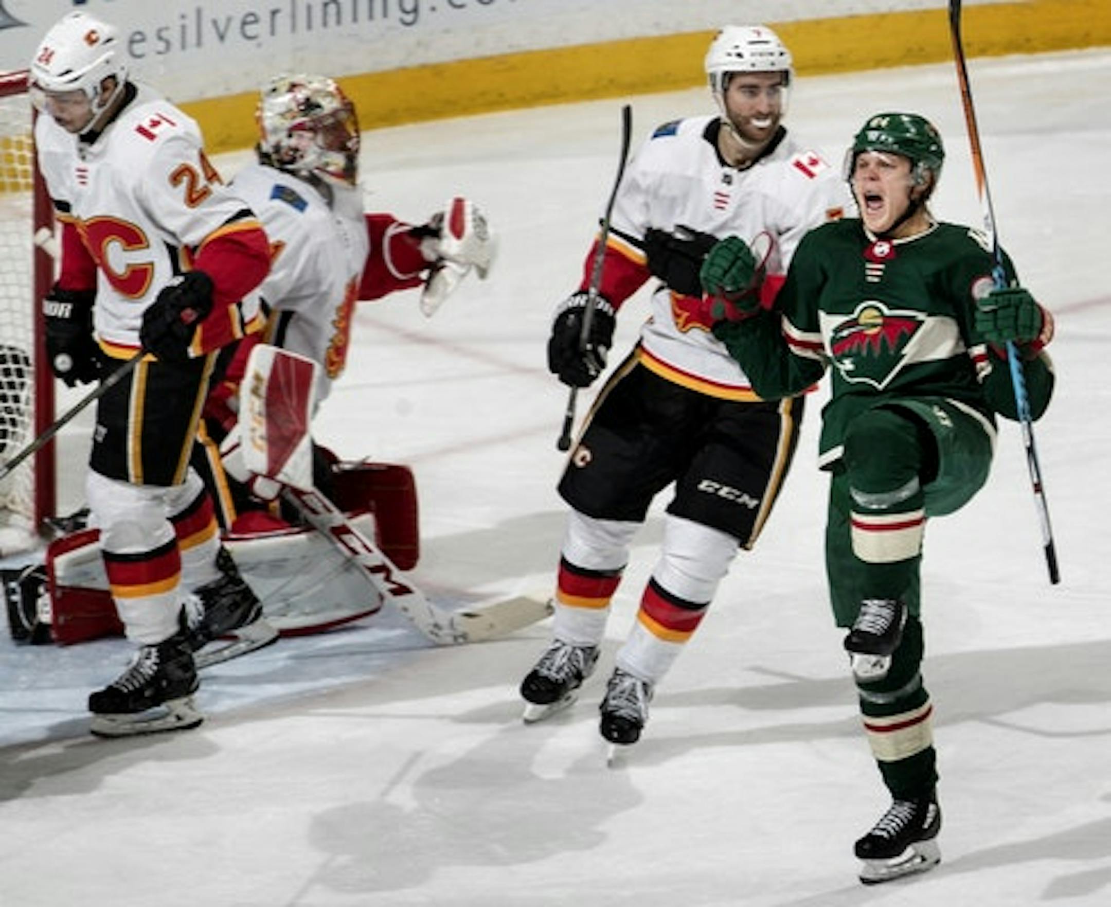 So anyway, with Niederreiter absent, Boudreau retooled his second and third lines (first line Ennis/Staal/Parise and fourth line Foligno/Cullen/Winnik remained untouched). It started out with Zucker/Koivu/Eriksson Ek and Stewart/Coyle/Granlund, but after the first score from Calgary, Eriksson Ek and Granlund switched places so the dynamic Zucker/Koivu/Granlund line could reunite.