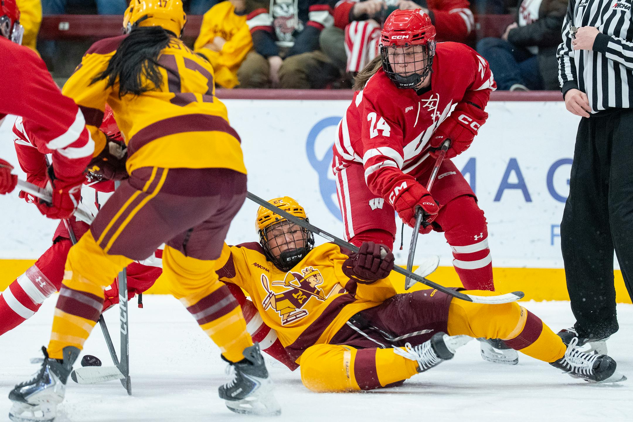 Wisconsin is without four members of Team USA: star defender Caroline Harvey, defender Laila Edwards, forward Kirsten Simms and starting goalie Ava McNaughton; plus Czech forward Adela Sapovalivova.