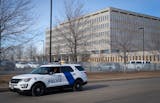 A homeland security officer drives past the Bishop Henry Whipple Federal Building at Fort Snelling. (Renee Jones Schneider)