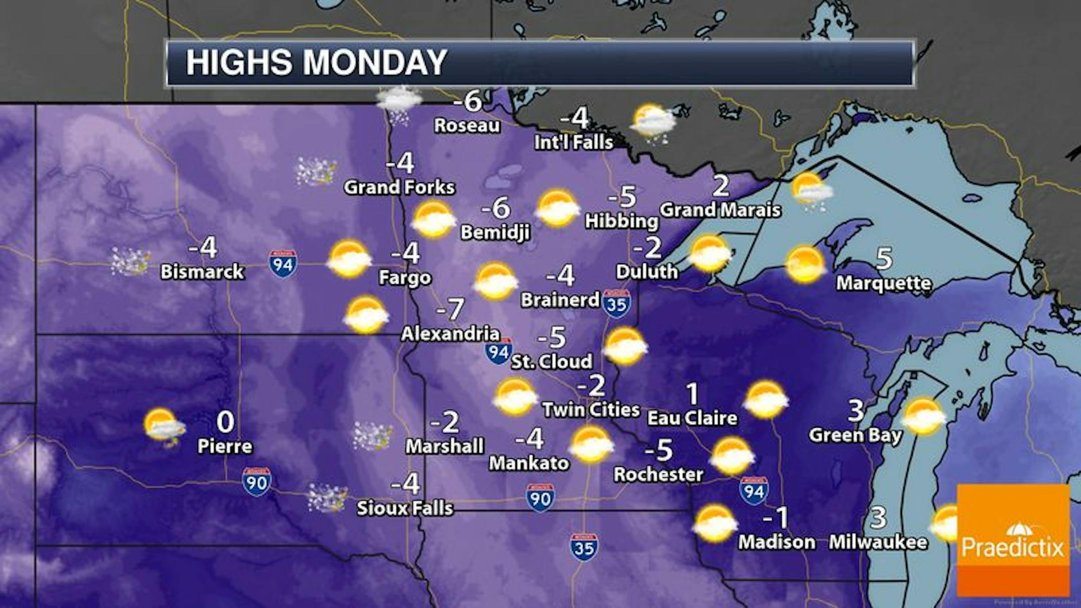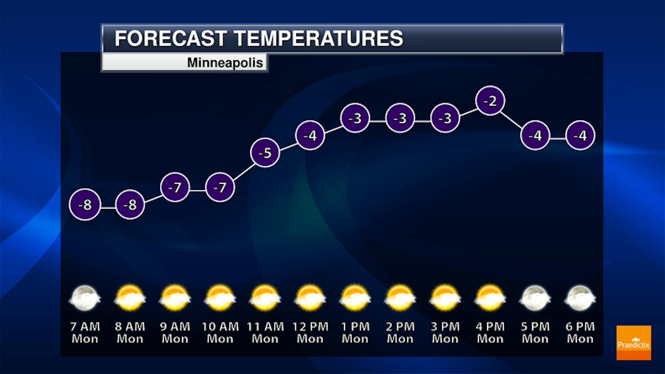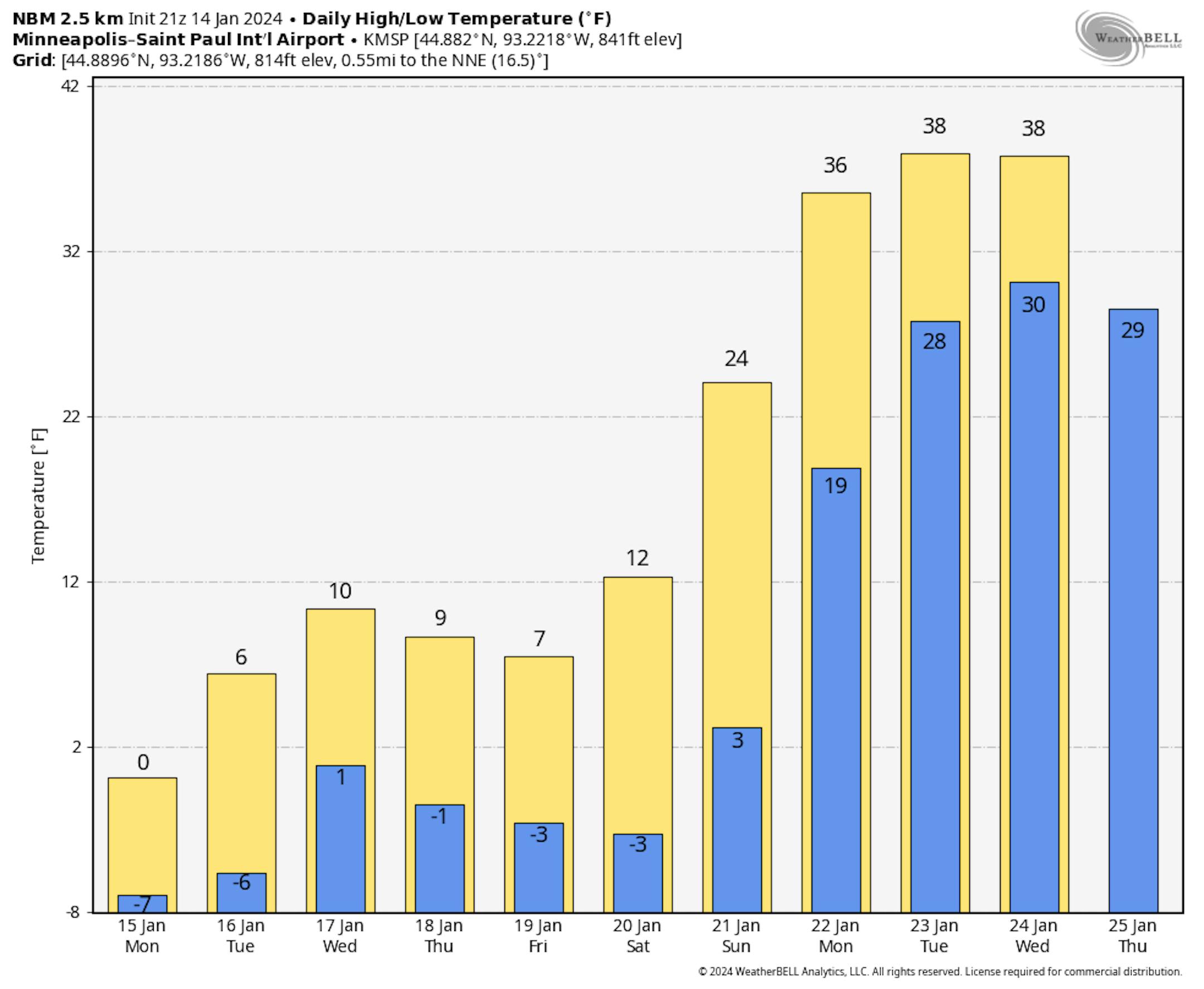 Temps in the Twin Cities over the next several days will continue to see very cold temps with readings running well below average for this time of the year. As we approach the weekend and into next week, we'll see a pretty dramatic shift toward warm temps once again.