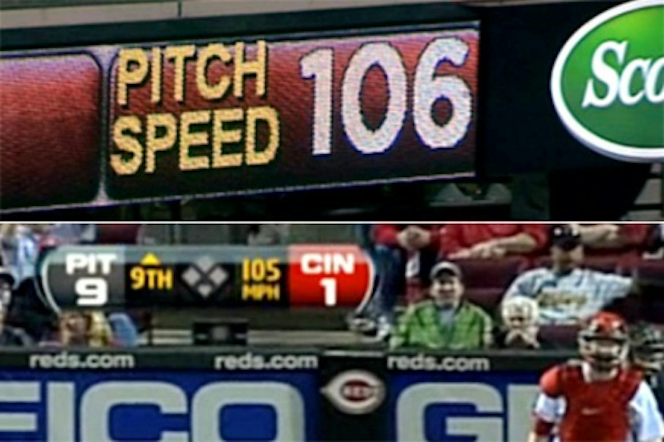 By now, you've probably heard that Aroldis Chapman of the Reds was clocked on the home radar gun at 106 mph last night.