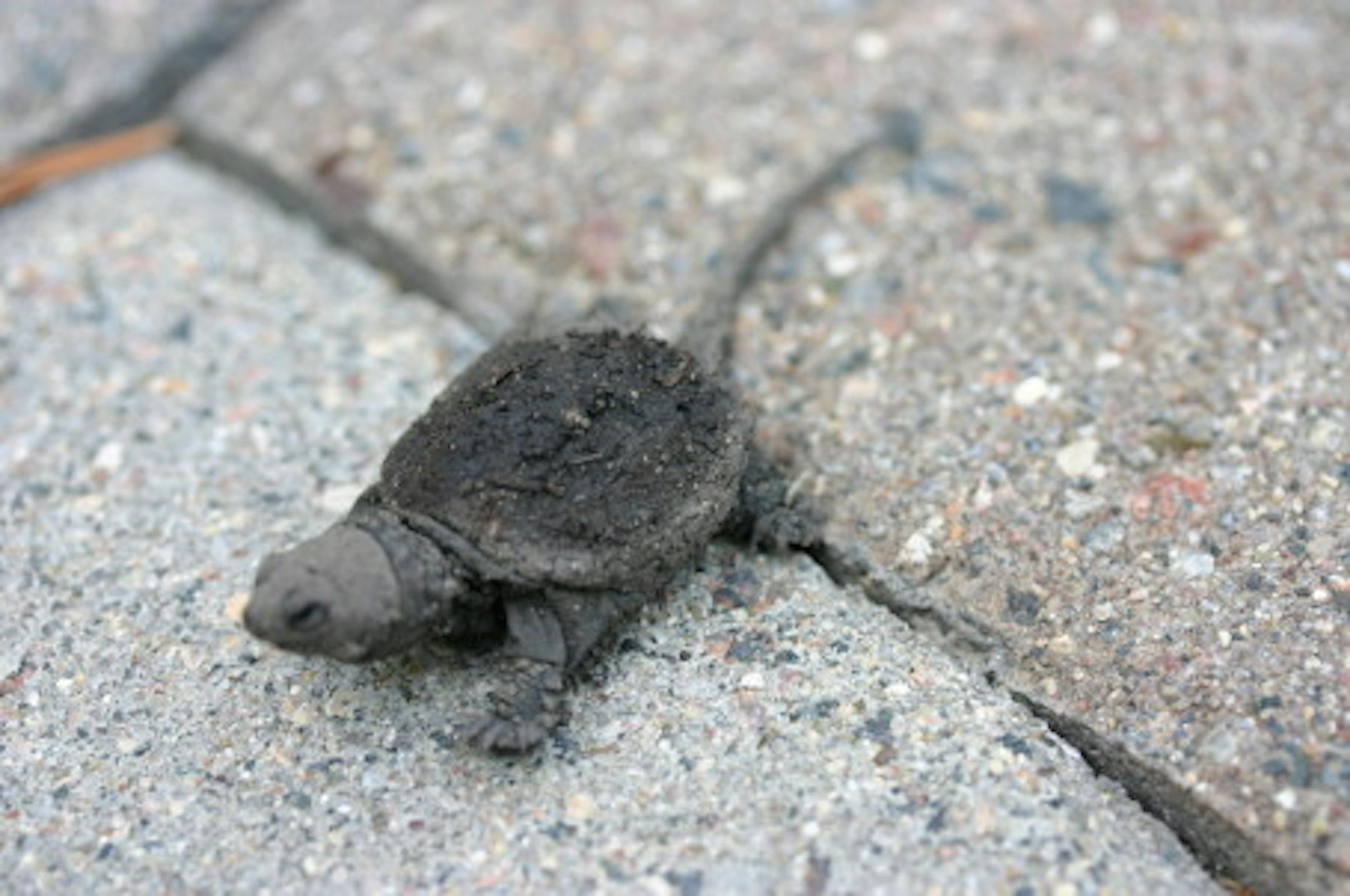 In Minnesota there were warnings about ravenous deer and blood-sucking bugs, but no mention of amphibious assaults. No one told me about the snapping turtles. It wouldn't have changed my mind about making a home out in the watery wetlands. But it would have been nice if someone had given me a heads up, or better yet, a toes-up. Despite the fact that they can't swallow above water, it didn't keep them from chomping chicken legs on that TV news piece the other night.
