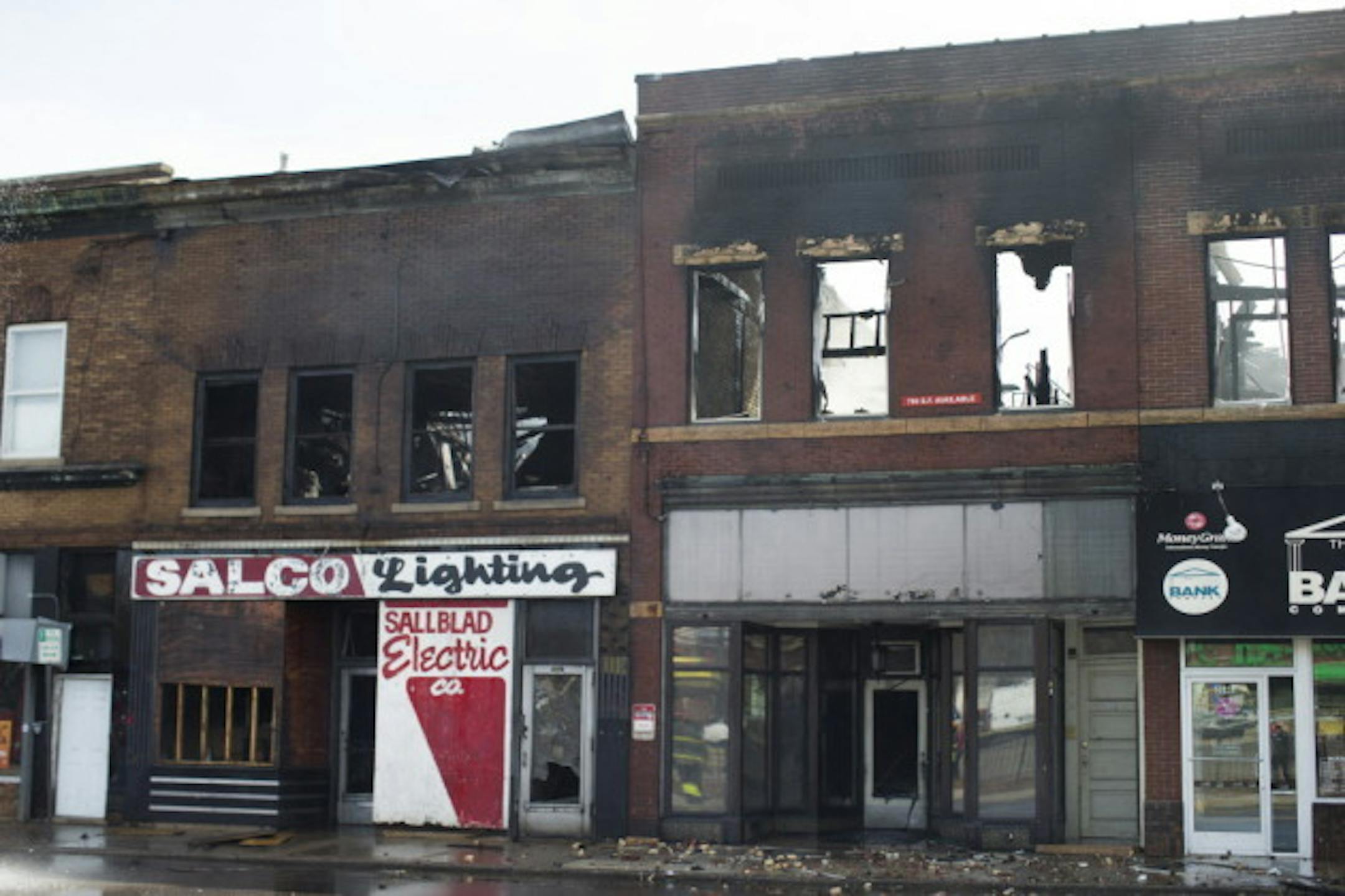 Above: NOC's former headquarters, center-right featuring the grey paneling, on the day of the fire this April.
