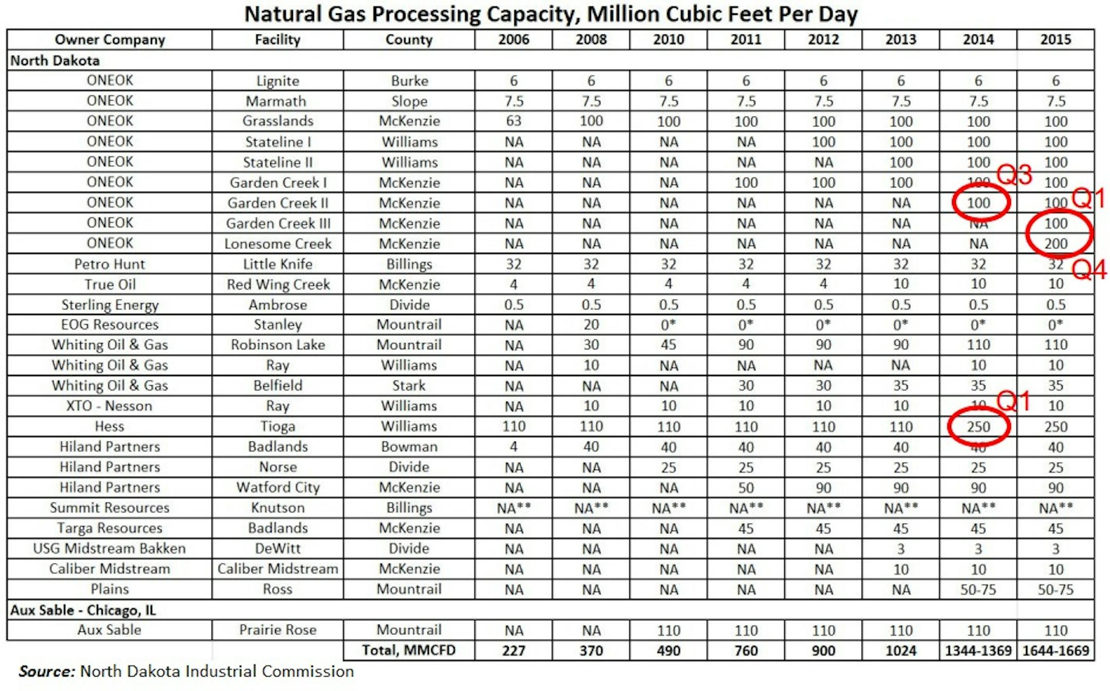 With the expansion of the Tioga plant in Williams County, and Golden Creek II in McKenzie County, natural gas processing capacity rose this year from 1 billion cubic feet to 1.3 billion cubic feet per day – a 30 percent increase.