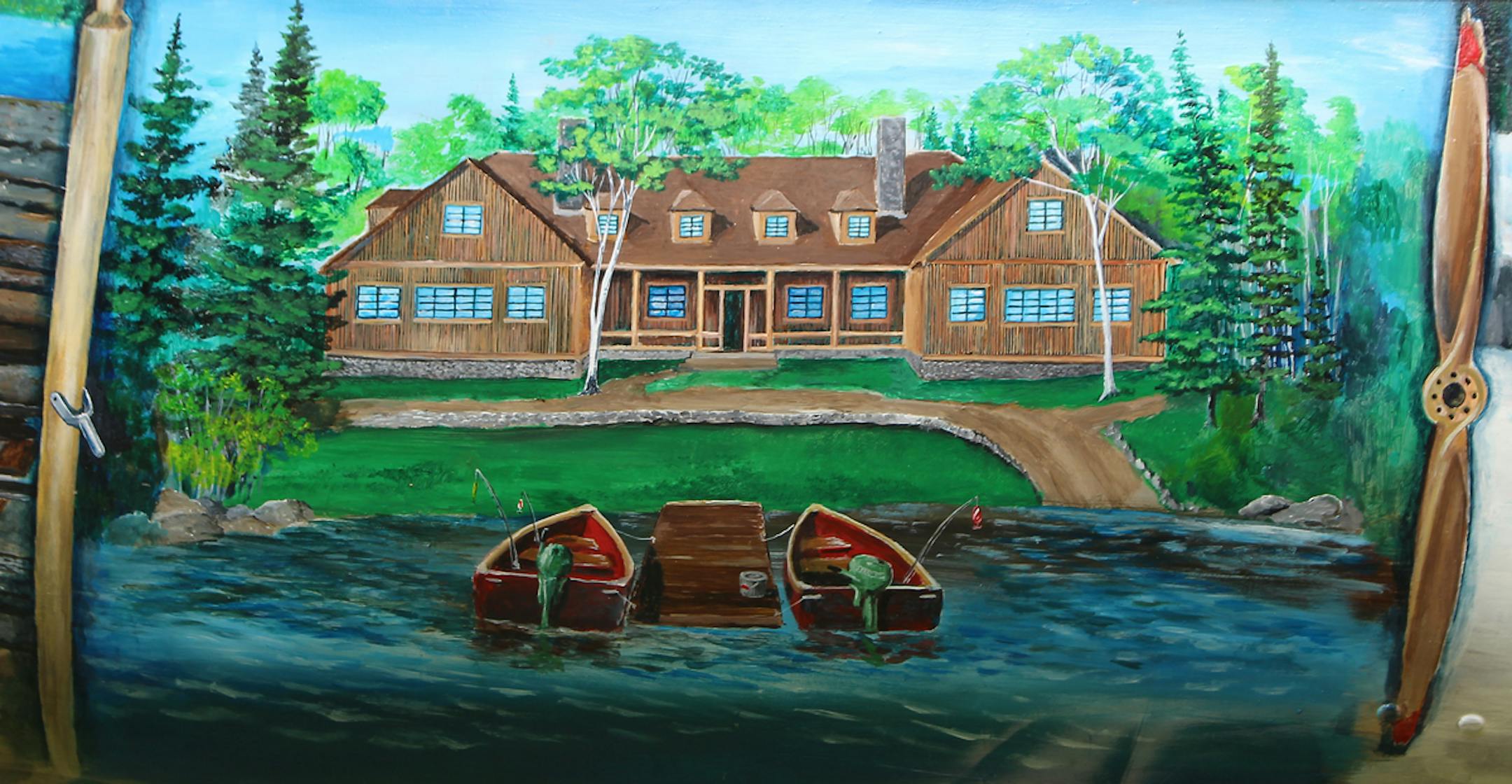 Baltich initially intended to paint only wildlife on both sides of a 17-foot Grumman canoe. But his employee, Jackie Hartleben, suggested he use the starboard (right) side to portray images from the current Boundary Waters Canoe Area Wilderness. The panels on the port side could then represent the BWCA 100 years before 1978 when it became a federal wilderness. So he took to research, summoned family experience, and created The Painted Canoe of Ely.