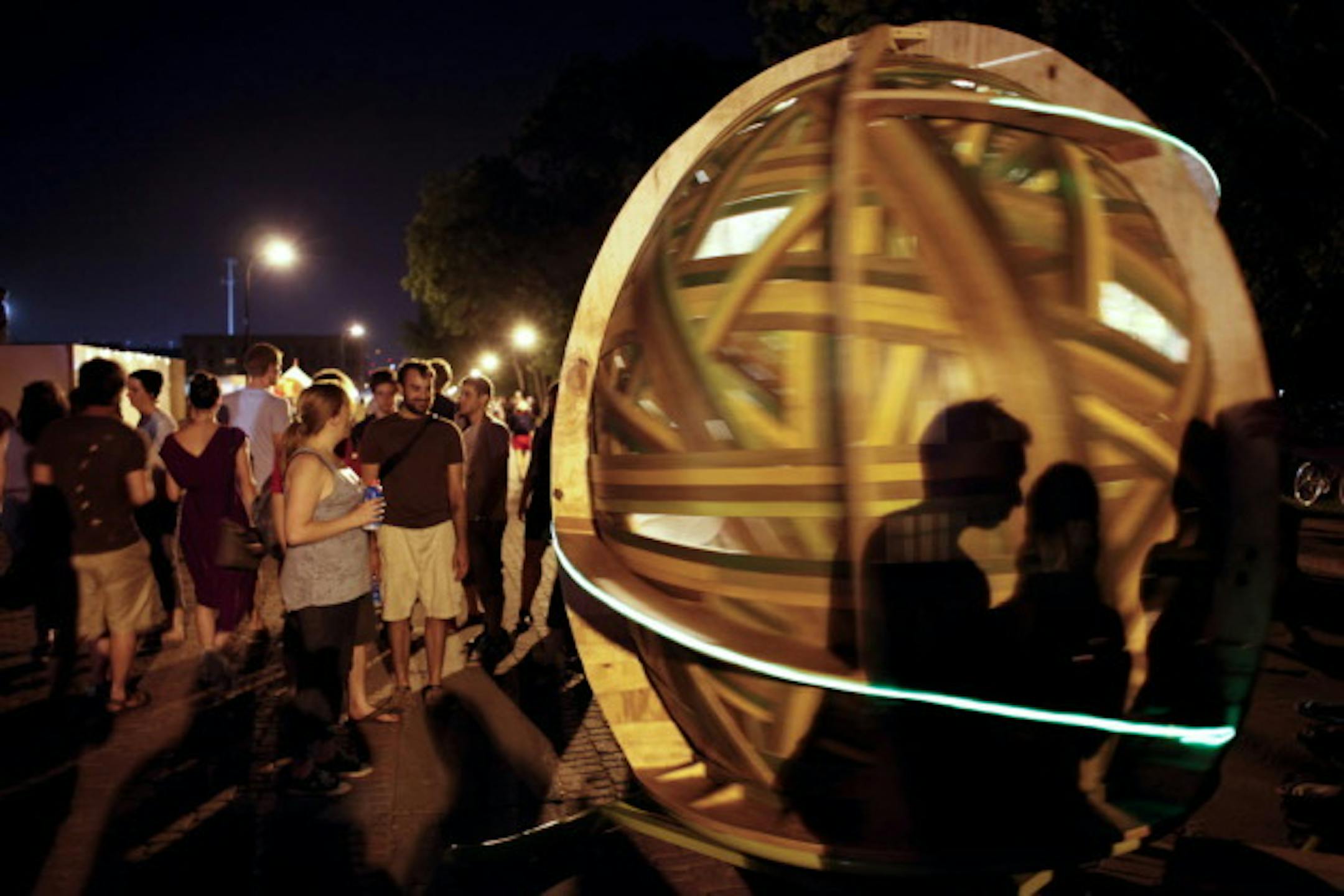 Northern Sparkers watch the "SitandSpinShanty" at the 2012 Northern Spark. Star Tribune photo by Megan Tan.