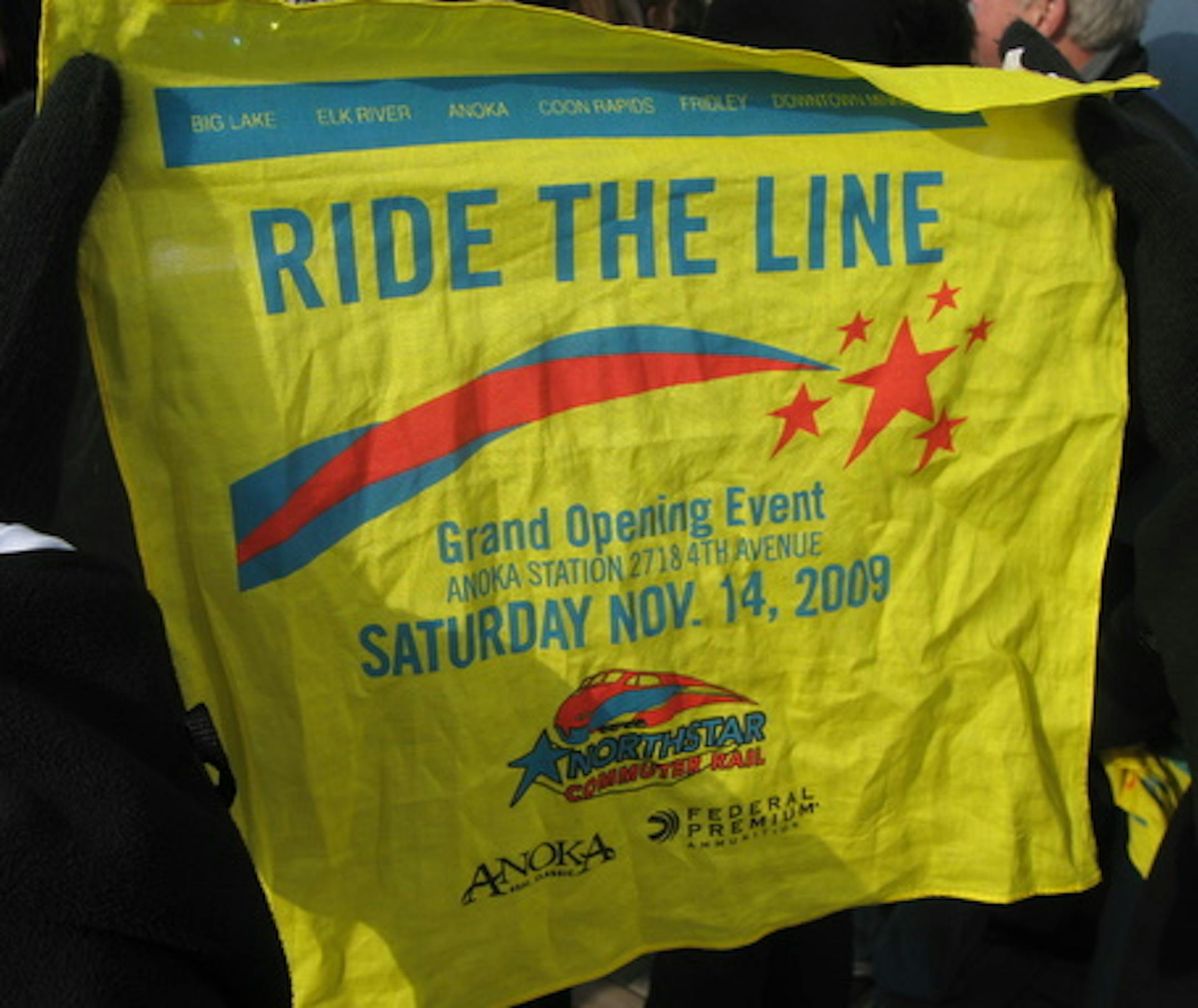 Each of the five suburban stations filled five cars' worth of seats for the rides, according to Metro Transit (1,200 people showed up at Big Lake, meaning 500 didn't get to ride). And presumably, each station had its own commeorative hanky:
