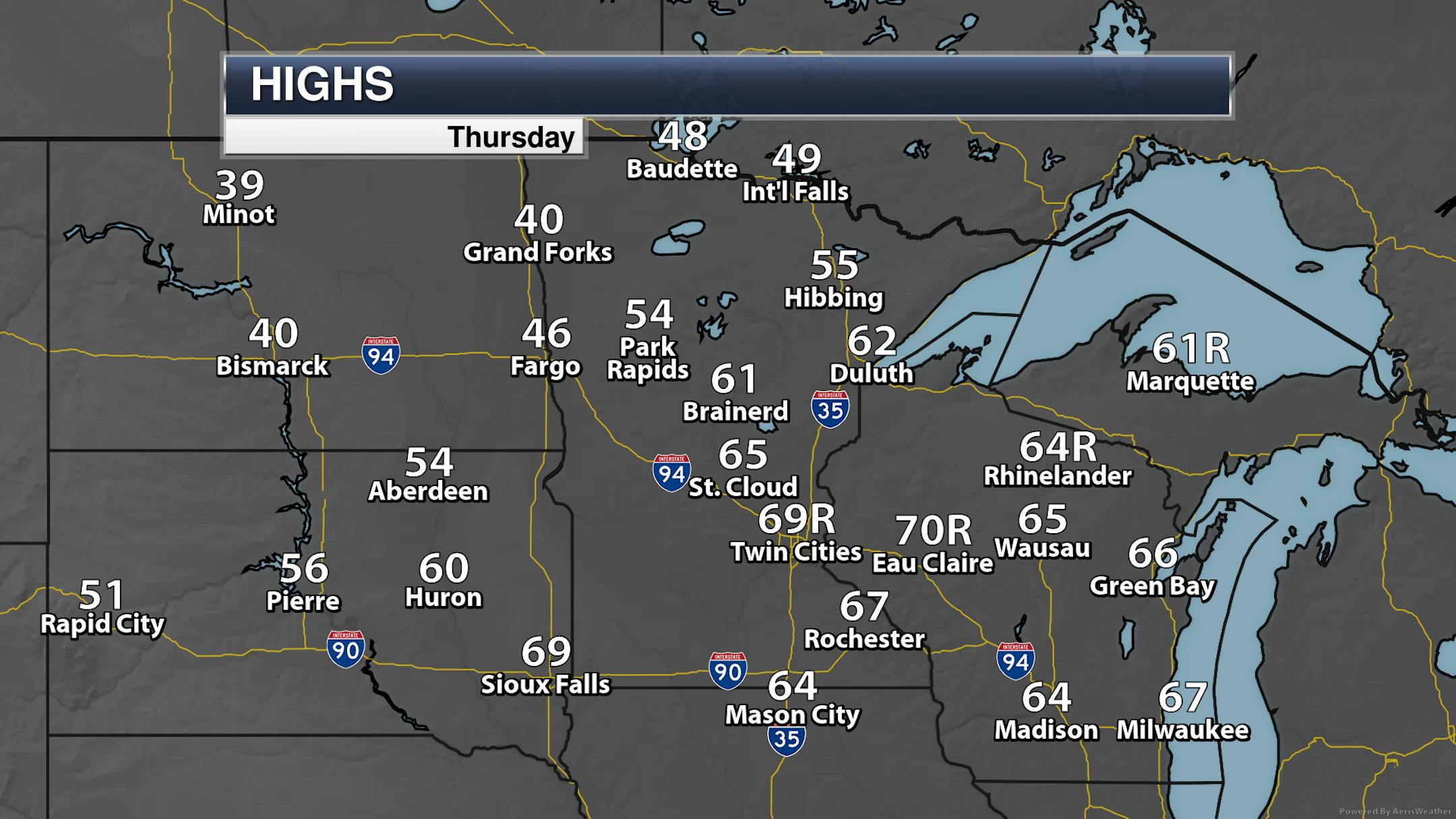 Well, Thursday got a lot warmer than I even expected! On the back of those strong southerly winds, MSP was able to hit 69F for a high - breaking the record of 68F from 1953 and 1931. Eau Claire, Rhinelander, and Marquette also saw record highs.
