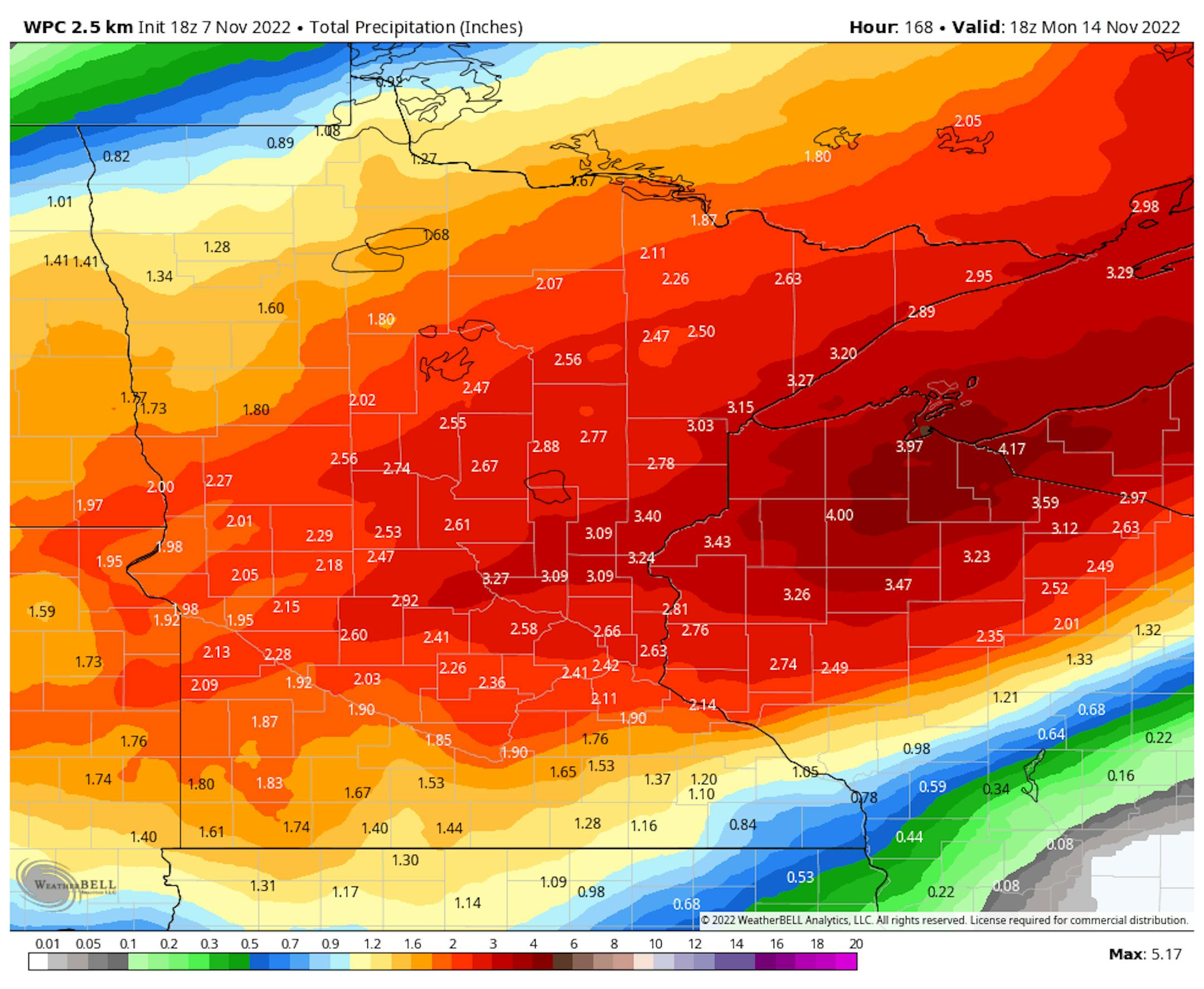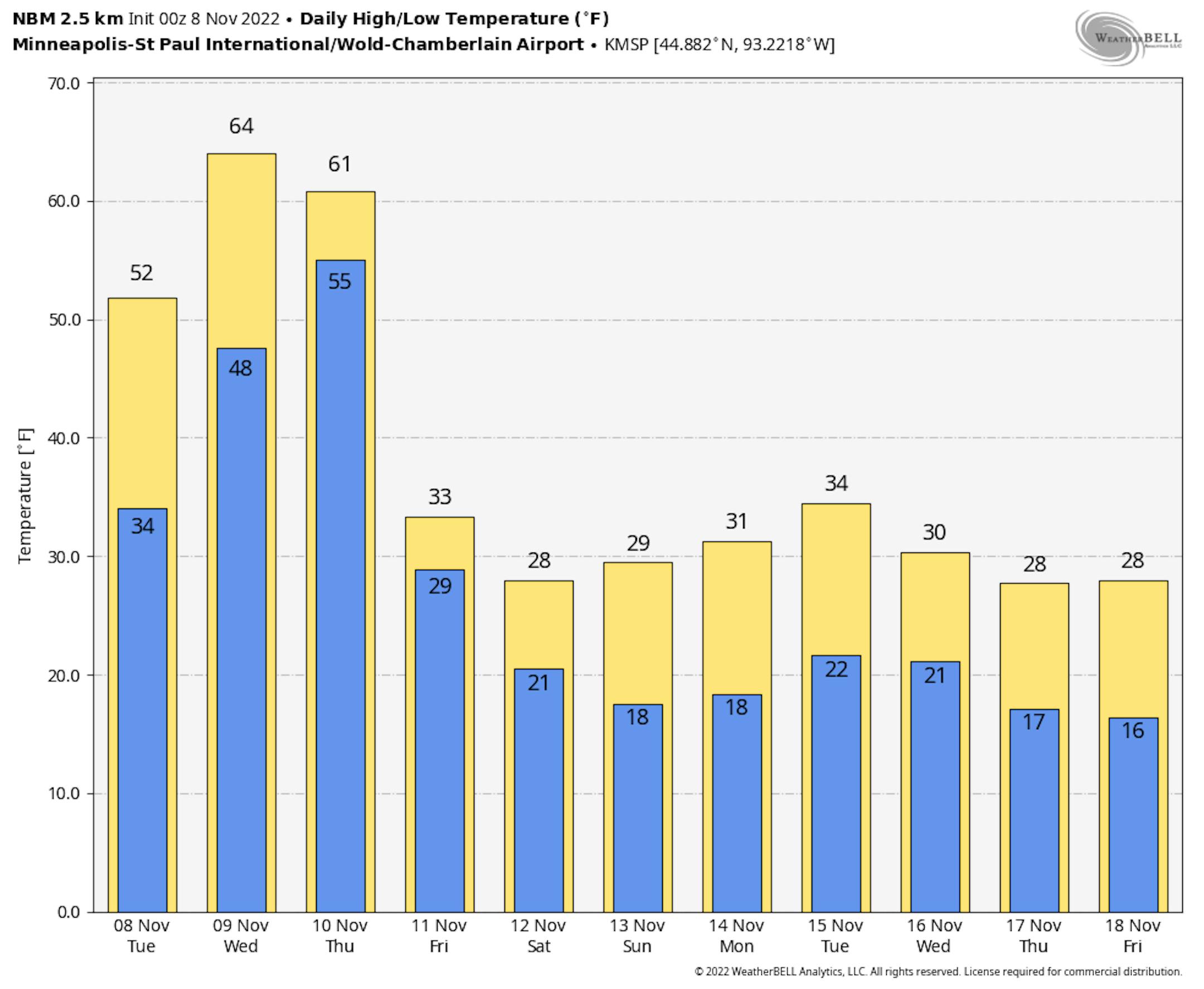 The Twin Cities is now more than 10" below average for the year, which is the 16th driest start to any year on record (through November 7th). Meanwhile, International Fall, MN is still nearly 9.50" above average, which is still the 2nd wettest start to any year on record there.