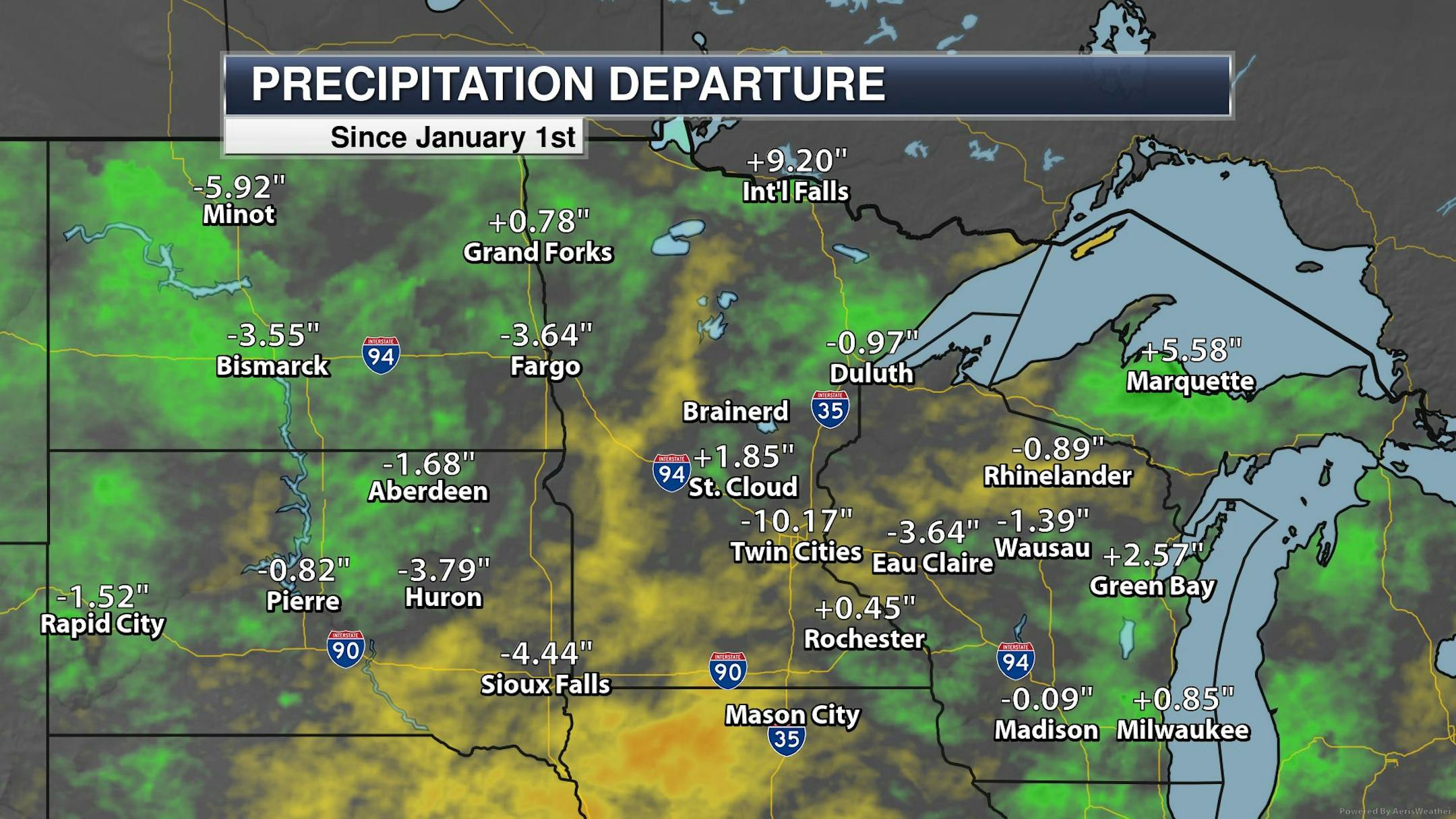Precipitation Departure From Average Since Jan. 1st