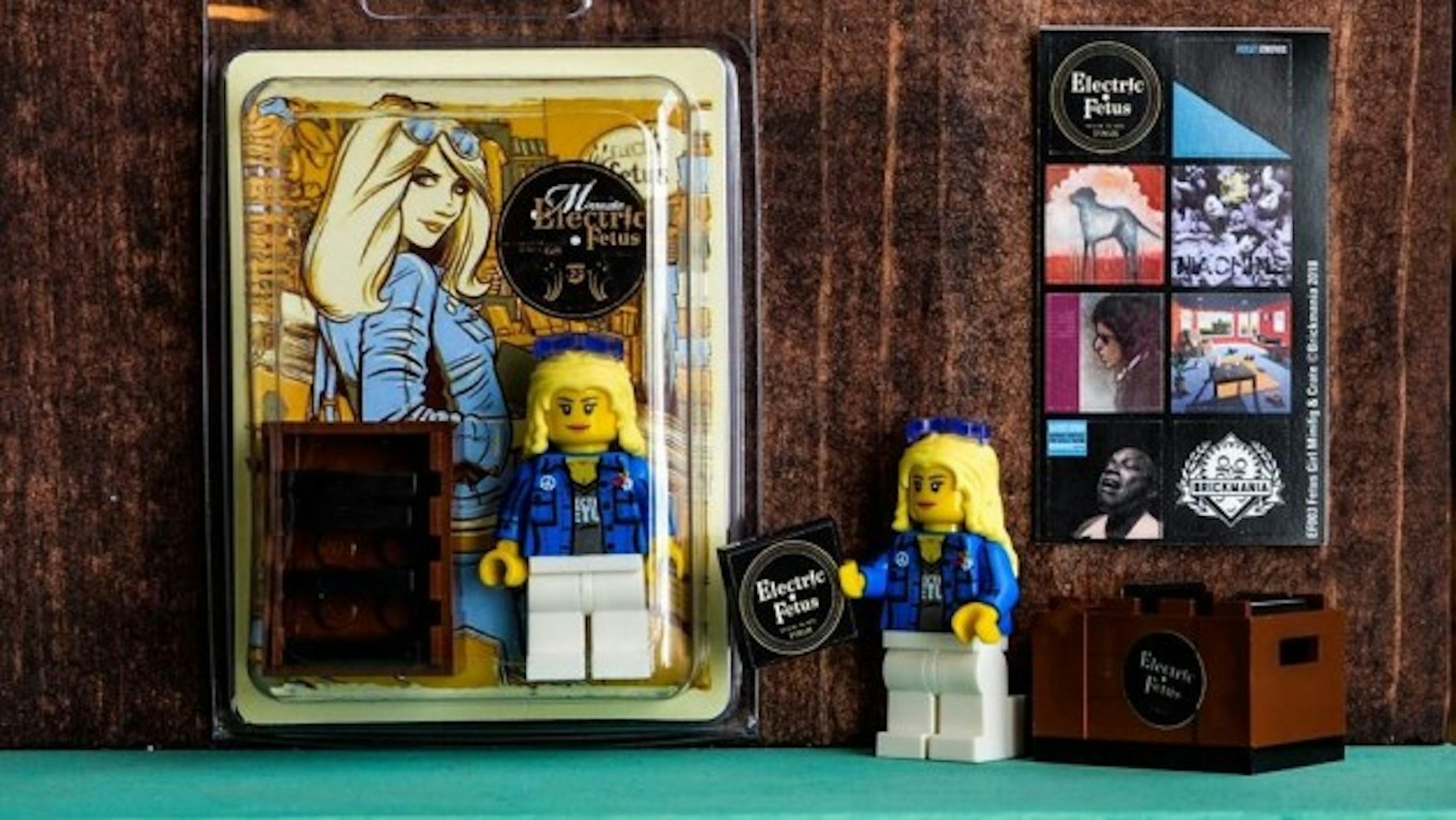 The minifigure is based on a poster print by well-known local artist Adam Turman. She's being sold for $25 along with a limited-edition Brickmania retro turntable with the Electric Fetus logo on it, which sells for $35. Each set can also be ordered online via ElectricFetus.com.