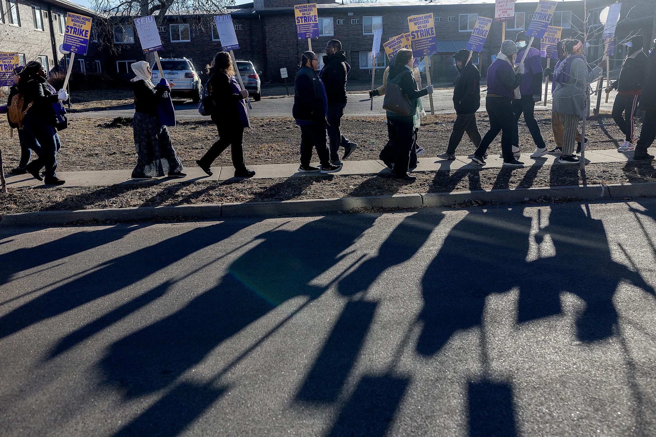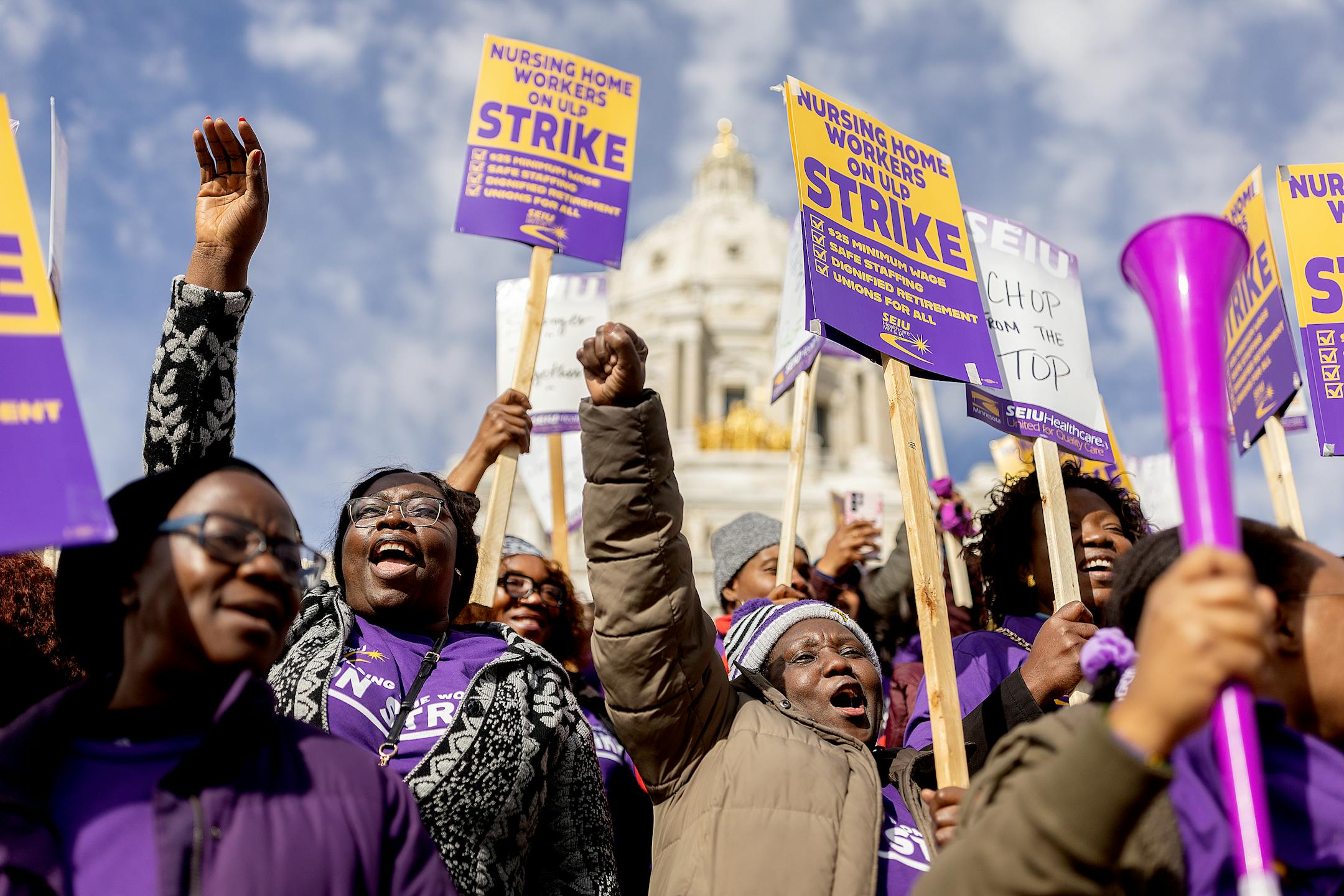 The workers’ contracts expired six months ago. The SEIU Healthcare Minnesota and Iowa and UFCW Local 663, which represent the workers, are asking for a minimum wage of $25 an hour and better staffing.