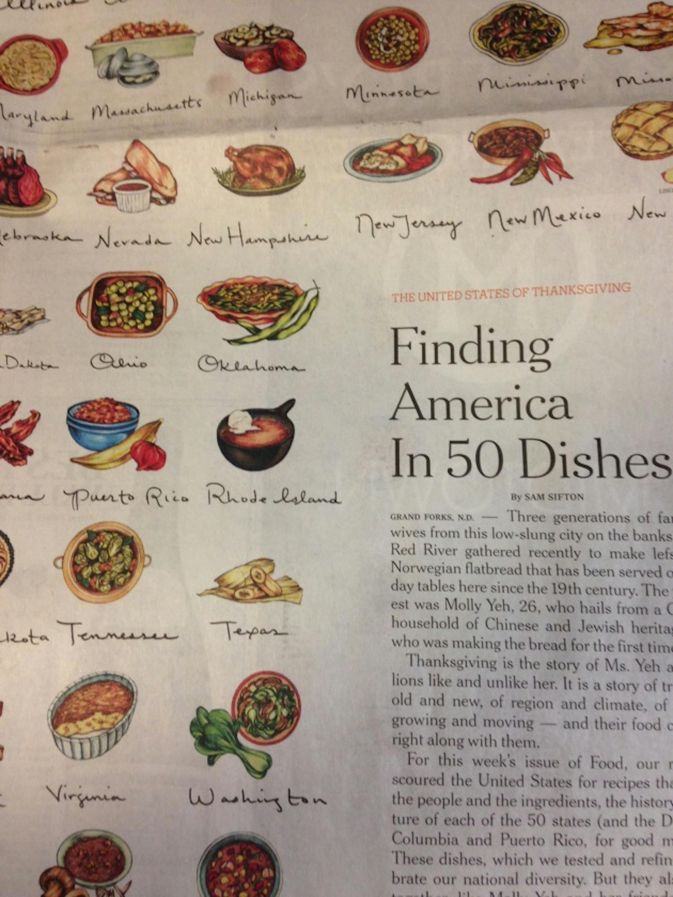 That was the case last night as the New York Times posted its state-by-state nod to traditional dishes of the 50 states and the District of Columbia and Puerto Rico. Good idea when well executed -- and one that food editors around the nation have done, on occasion, for decades (they generally contact other food editors to find out what the traditional dishes are).