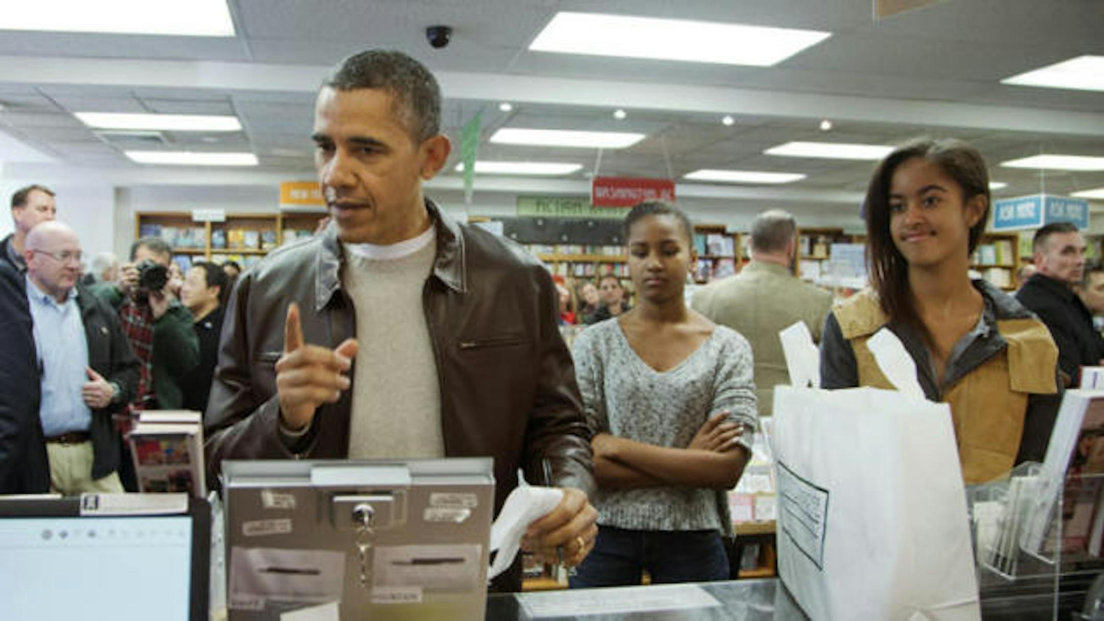 While you were out shopping on Saturday, doing your bit for small businesses and indie bookstores, the President was following your lead. He and his daughters popped into their local indie, Politics and Prose in Washington, D.C., and hauled a pile of 21 books up to the counter.