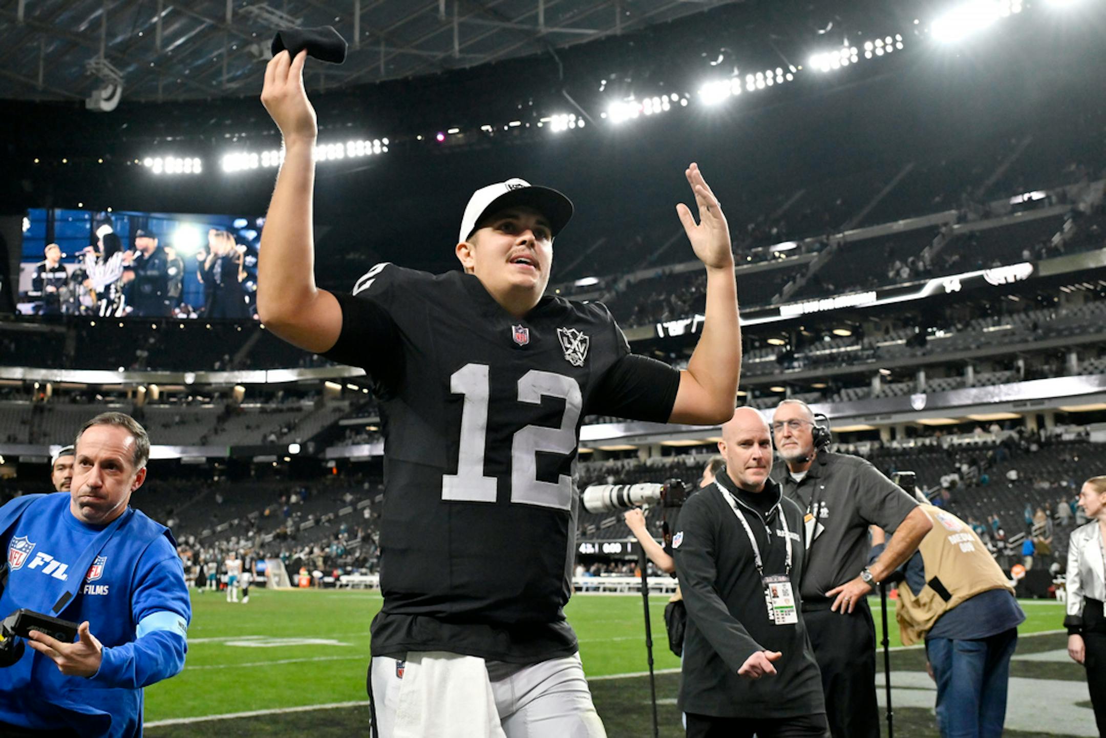 LAS VEGAS — Raiders owner Mark Davis made the rounds Sunday to congratulate the players as music blared inside the locker room.