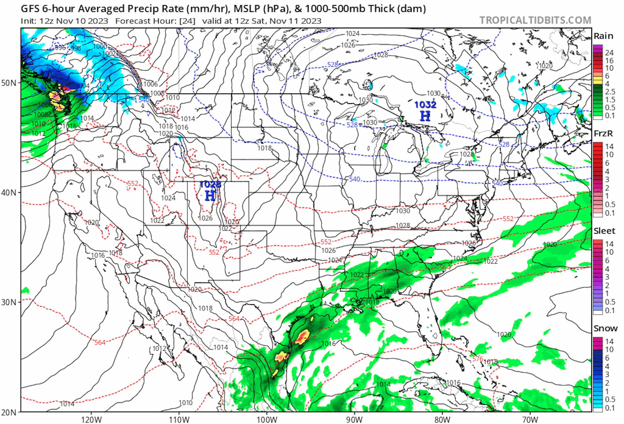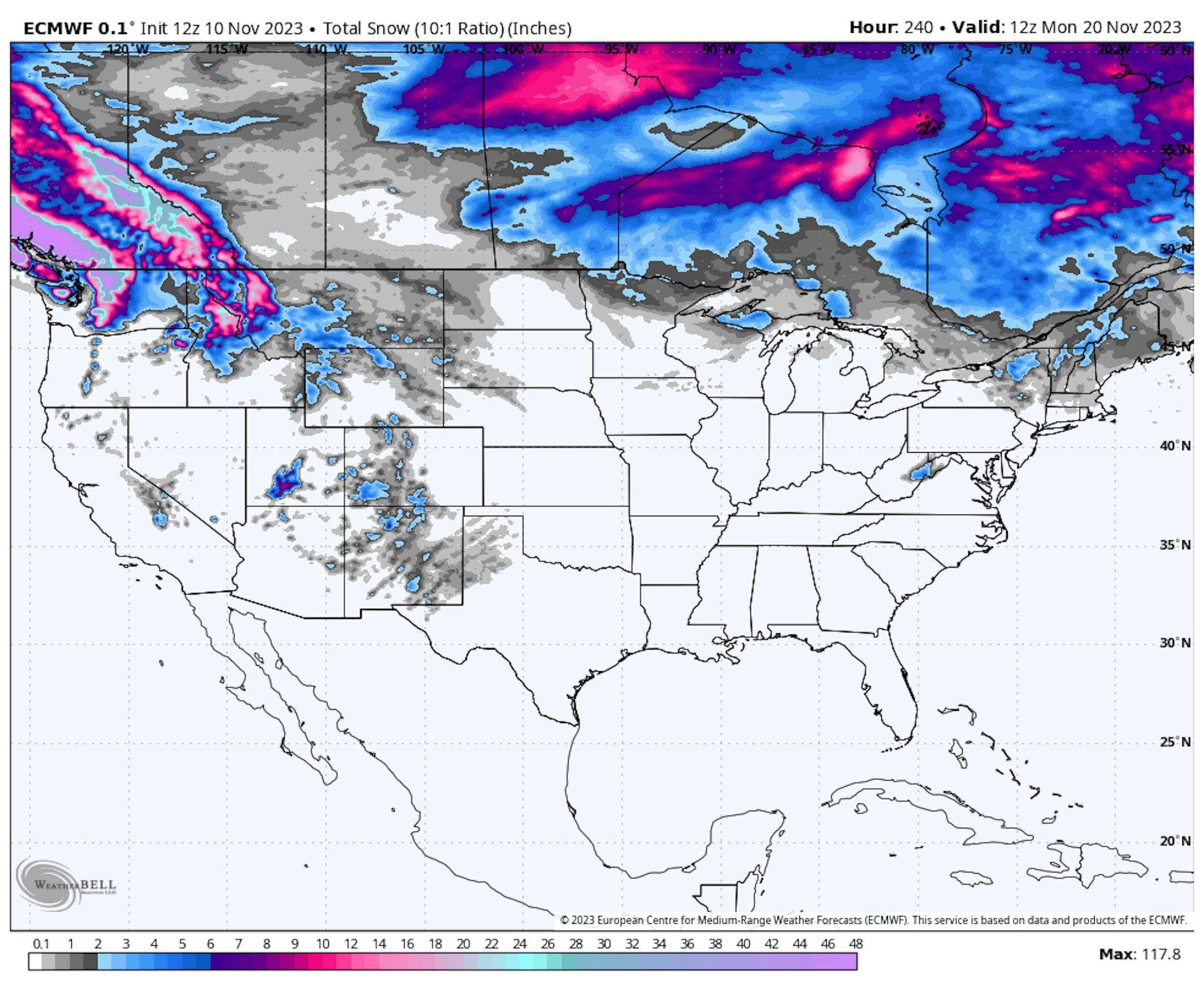 Here's the simulated radar through midday Sunday, which shows most dry conditions across the region through the weekend. There could be a few light rain or snow showers across parts of the region, but most of the weekend will be dry.
