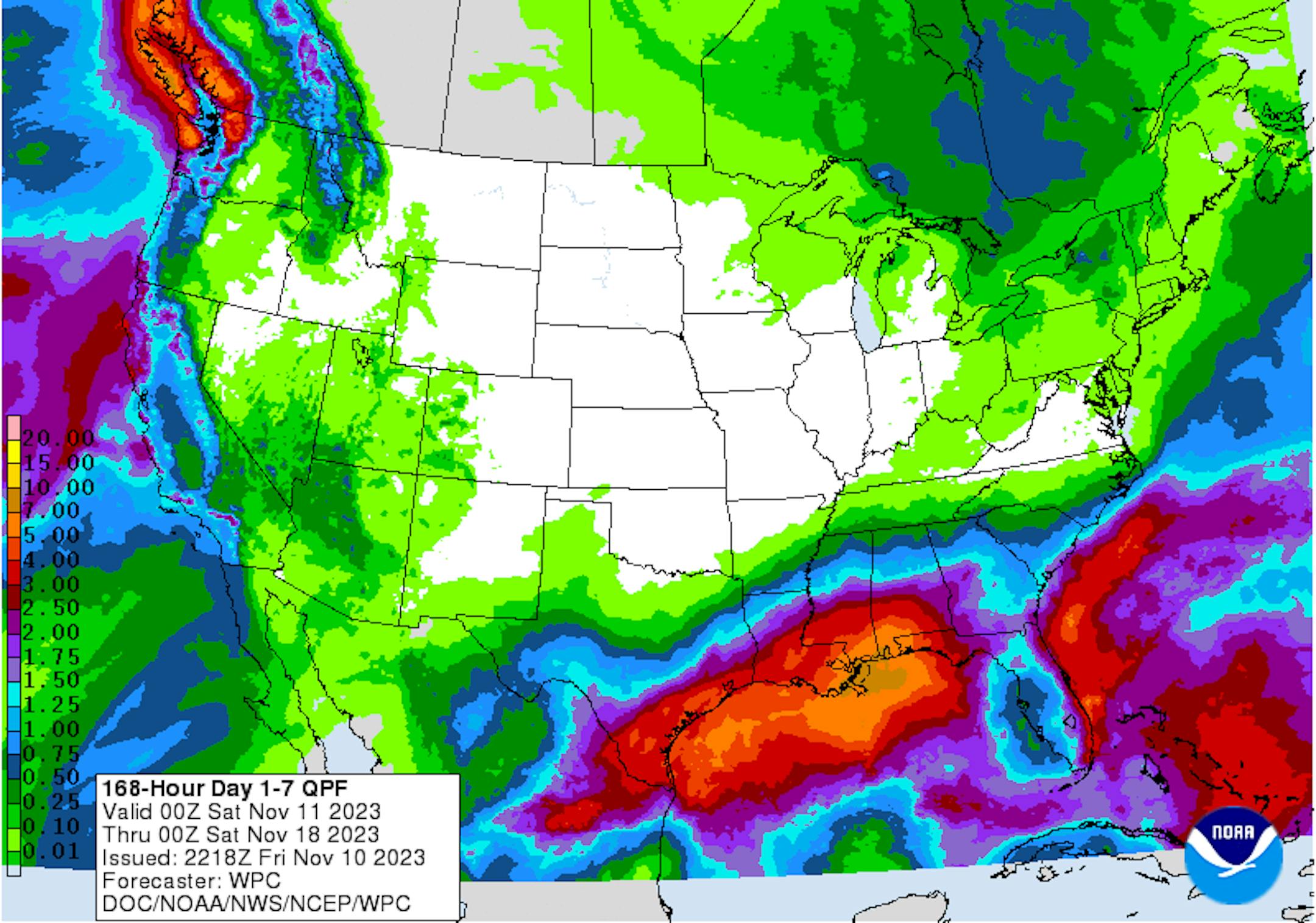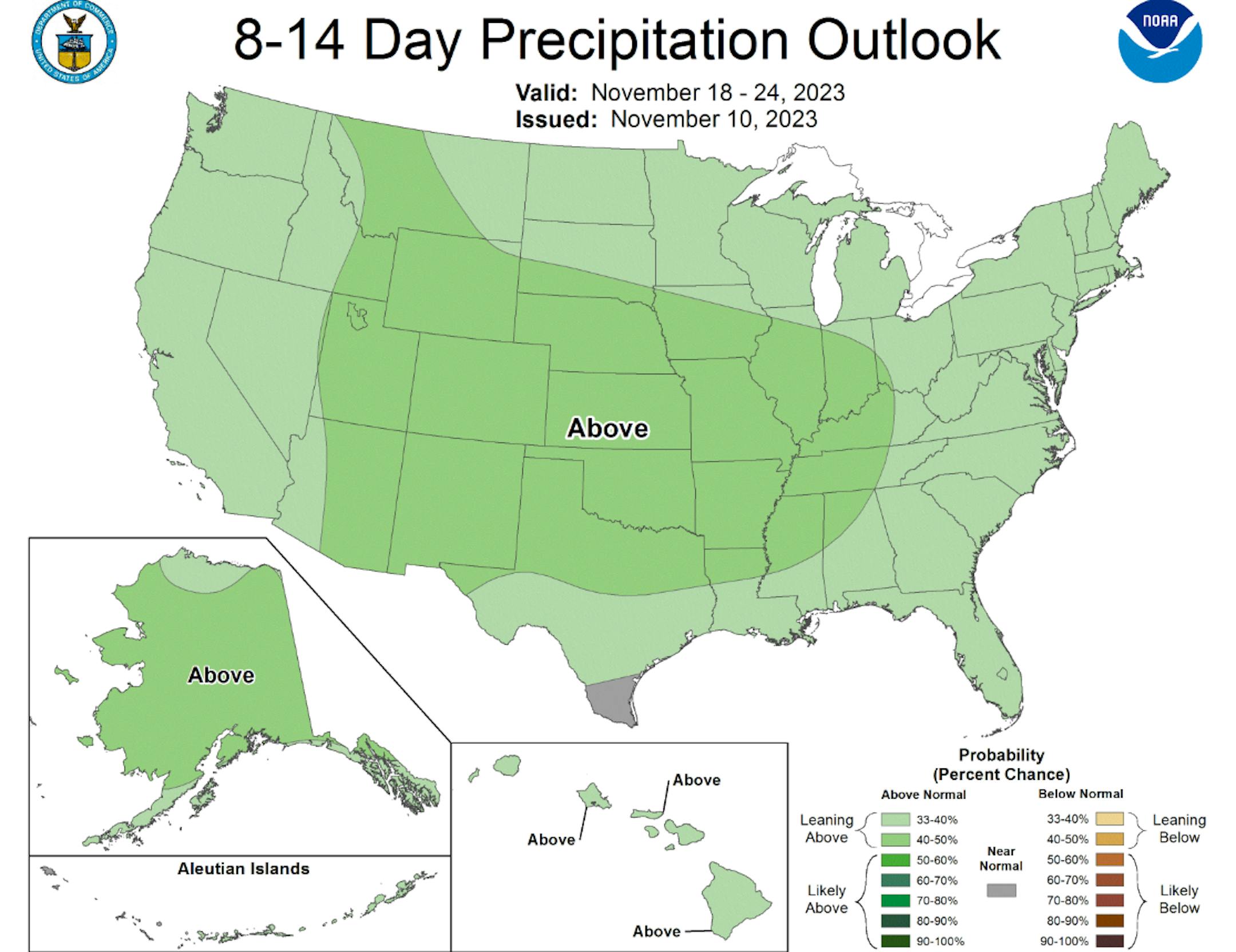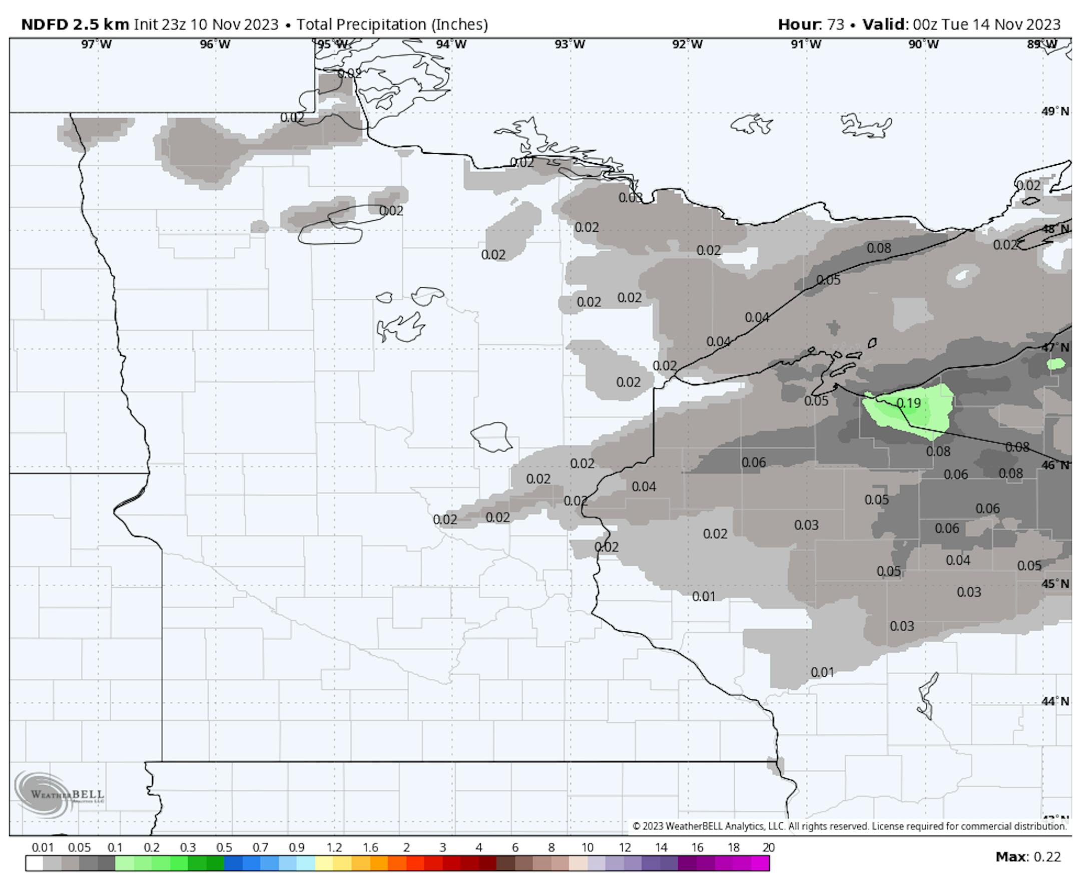 The extended precipitation outlook through the weekend shows very minimal precipitation. Much of the region will stay dry with only a few hundredths possible north and east of the metro.