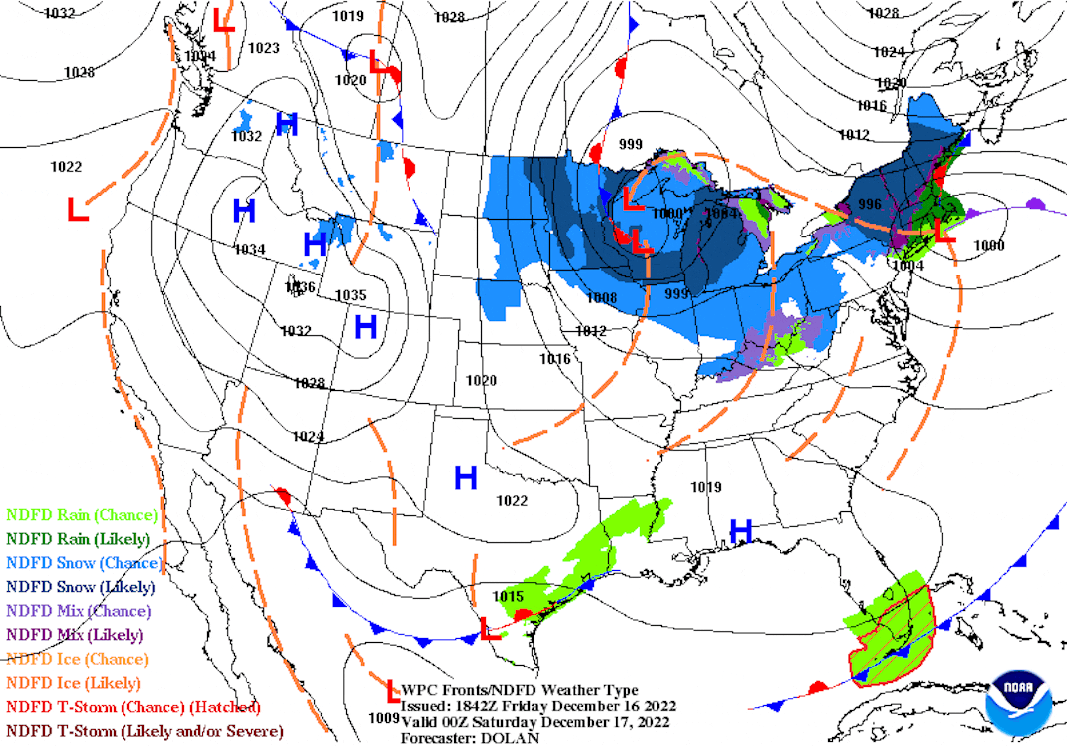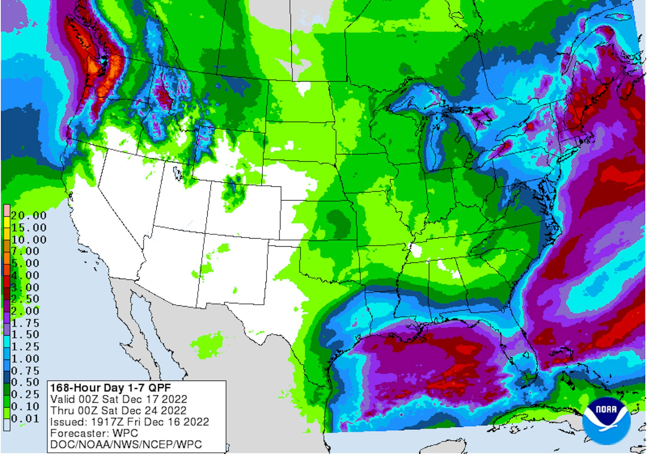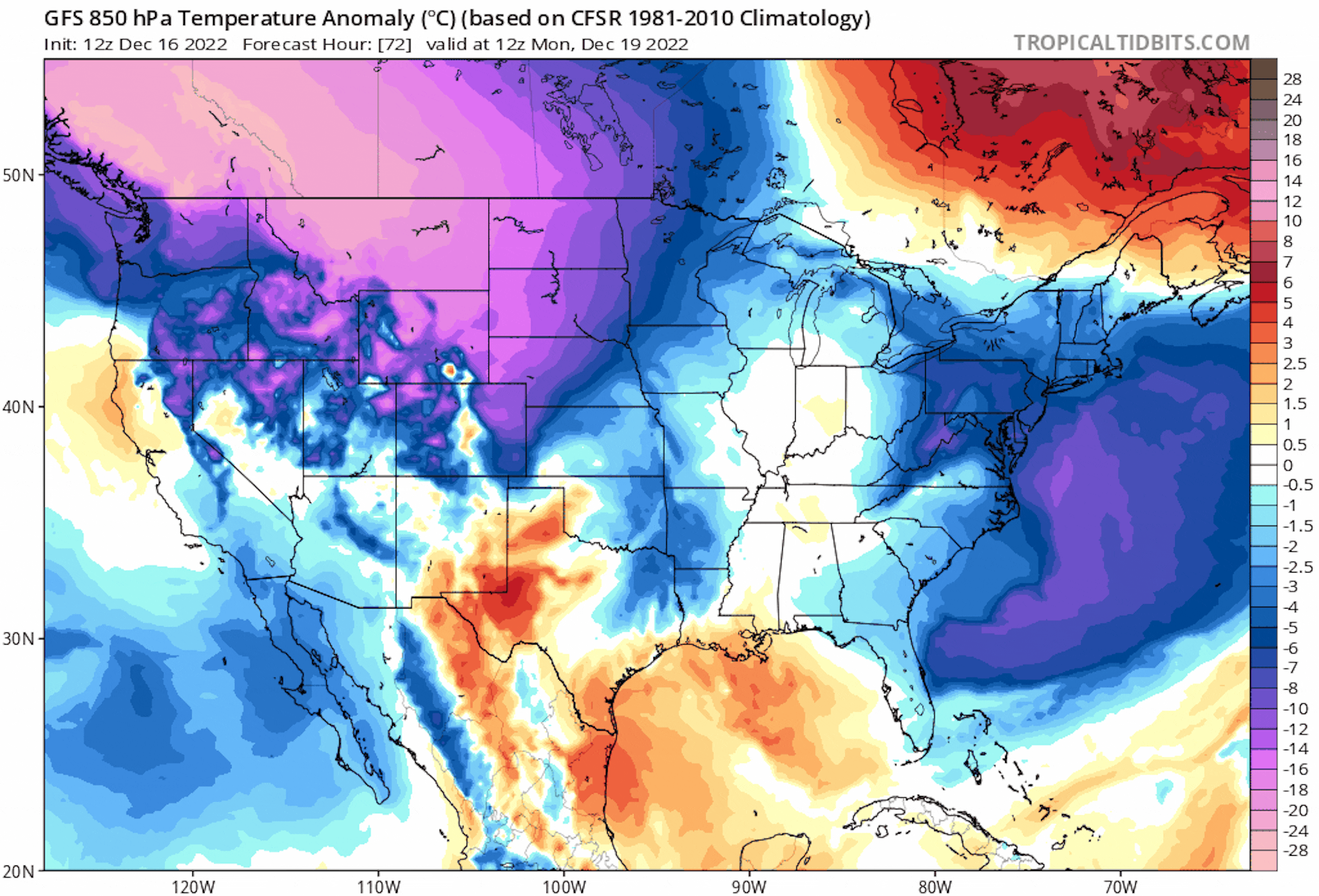 According to the GFS, the storm will develop a little farther south, bringing the heaviest snow to the Central US, through he Ohio/Tennessee Valley and into the Northeast late next week and into the weekend ahead. This too would cause major travel headaches for folks leading up to the Christmas Holiday Weekend next week.