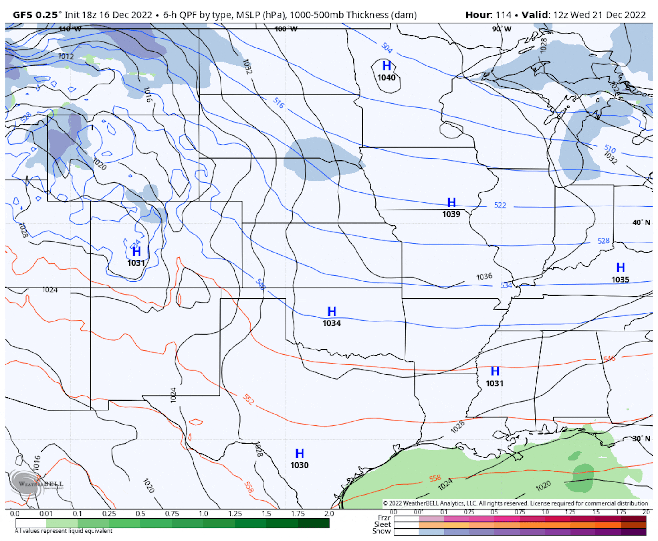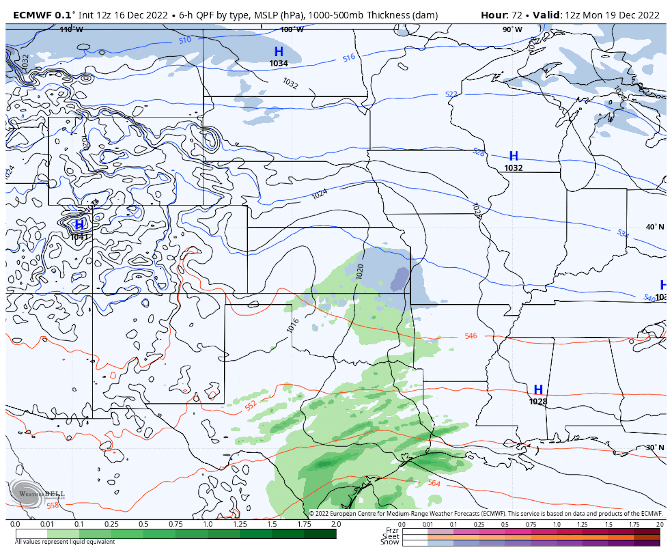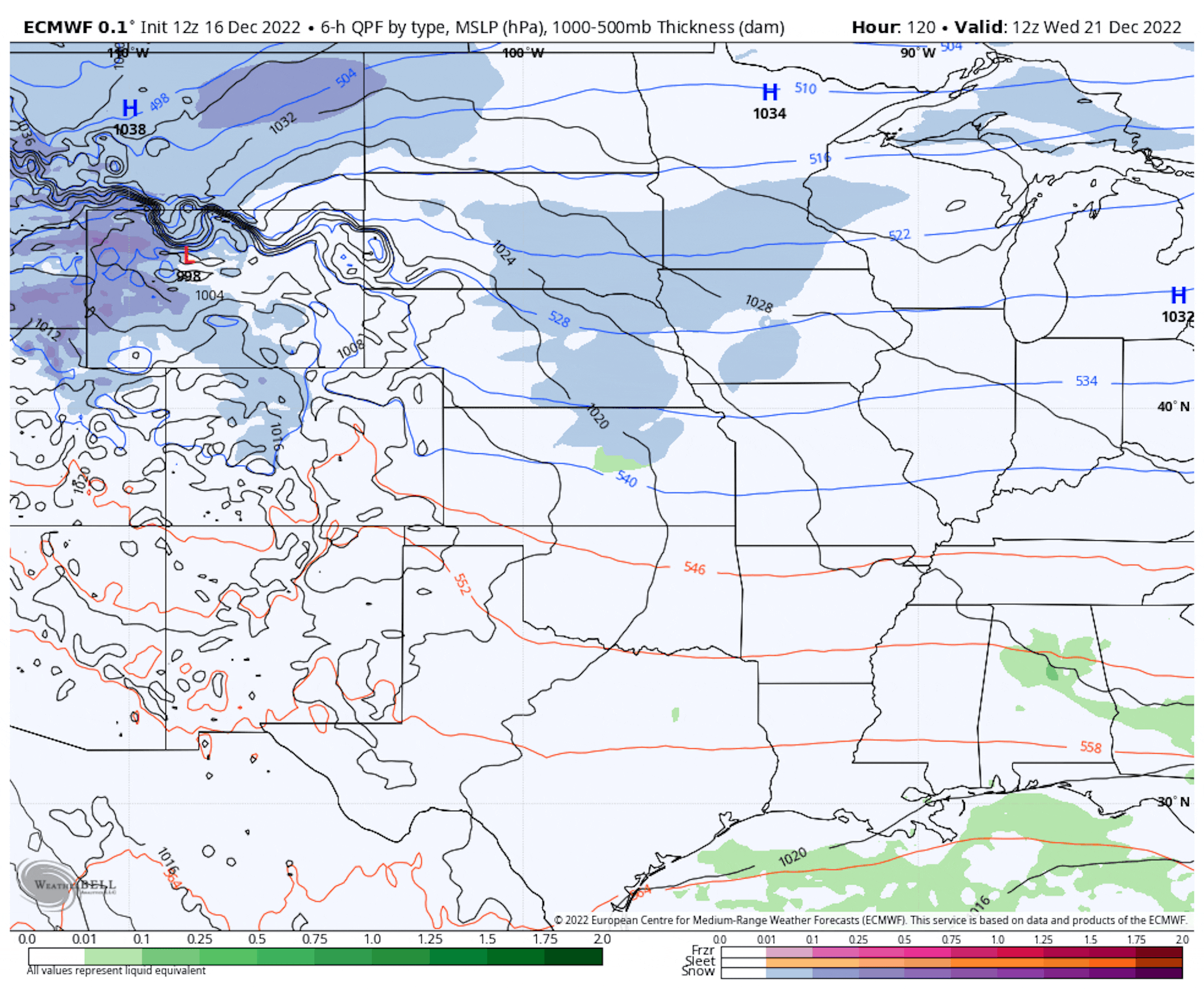 According to the ECMWF (European Model), there could be a much larger storm system developing in the Midwest during the middle part of next week. If this verifies, it could be a very white Christmas. There is still a lot of uncertainty with this developing system, but it's one to watch, especially if you have travel plans next week.