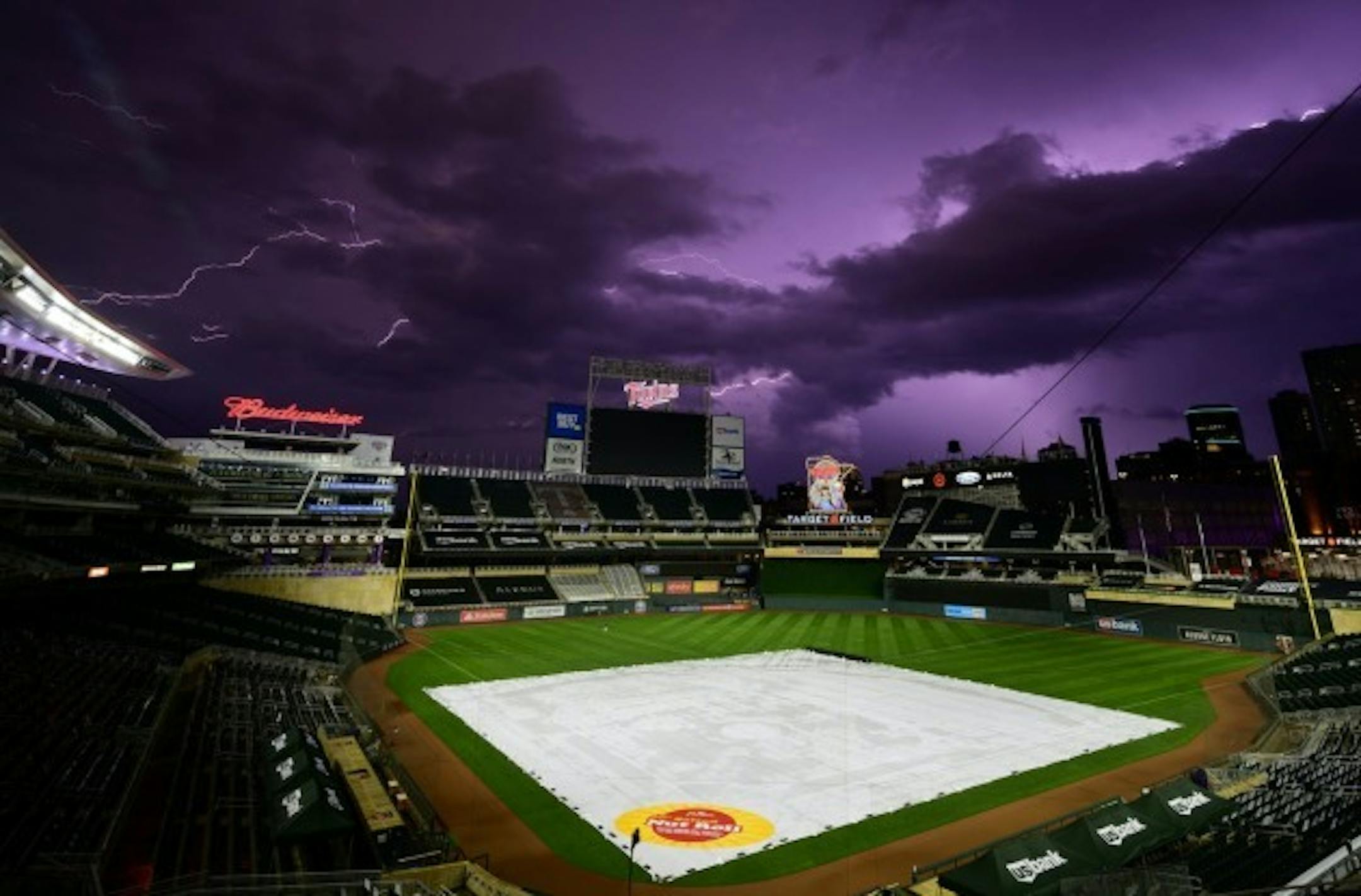 Fabulous weather greets the Twins and Royals today at Target Field after Friday night's game was wiped out by a severe thunderstorm. Aaron Lavinsky caught this image of the scary sky.