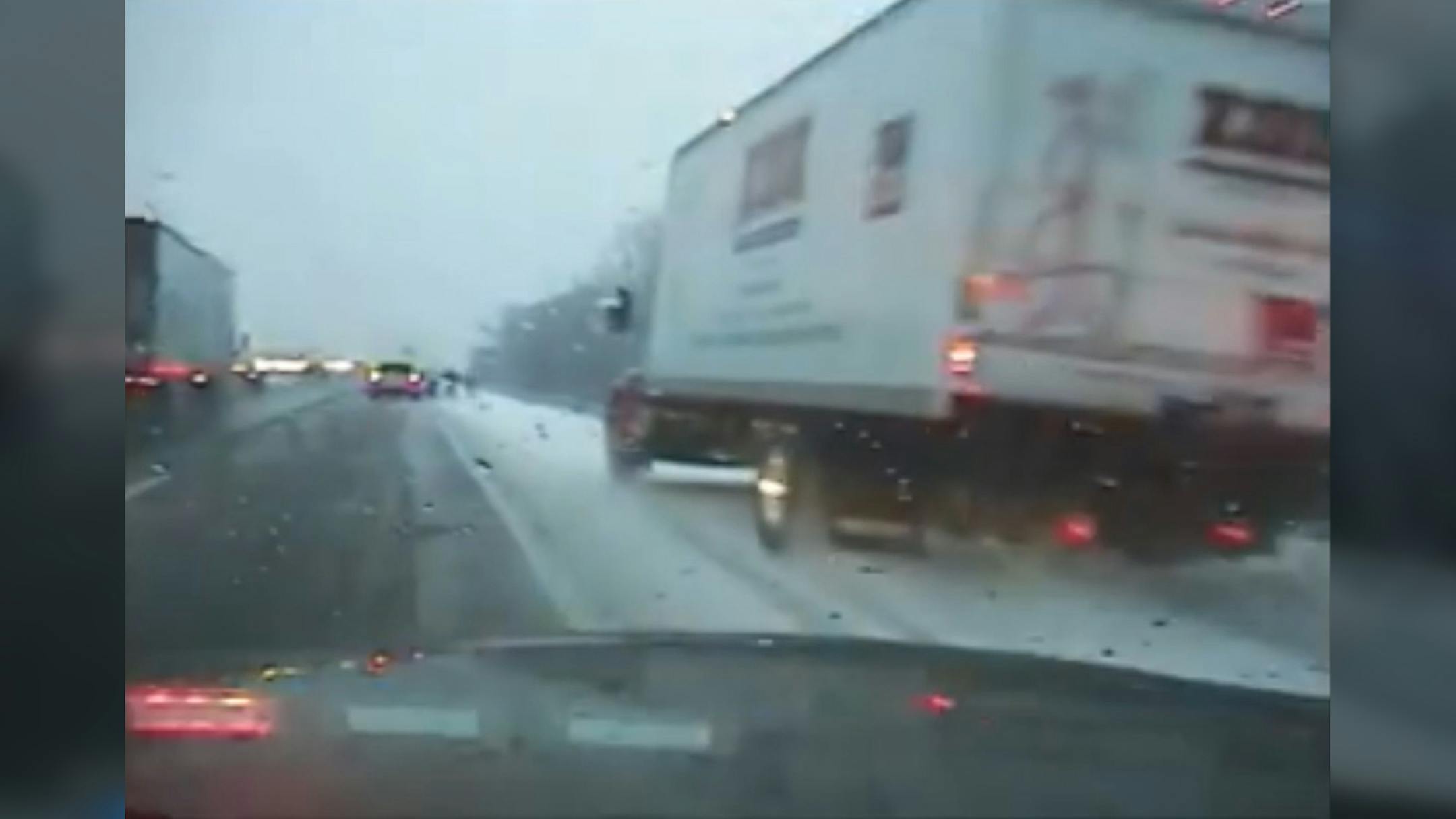 A video posted on the Crystal Police Department's Facebook page shows the truck whizzing by on the right side of Lt. Peter Underthun's squad while it was parked on the shoulder of westbound I-94 between County Road 81 and Hwy. 101 with lights flashing.