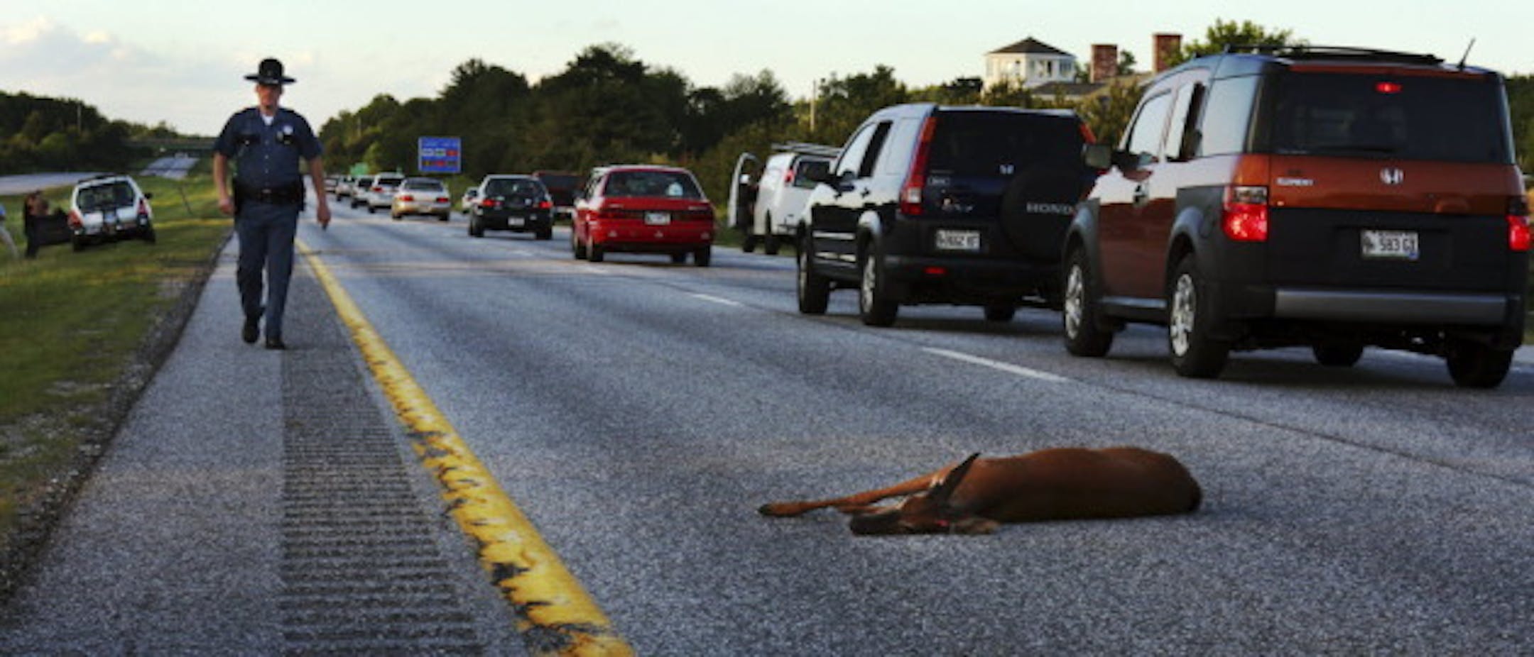 Deer often move in groups are are unpredictable. Due to hunting and migration, movement is greater during the fall, with the risk to motorists highest in dusk to dawn hours.