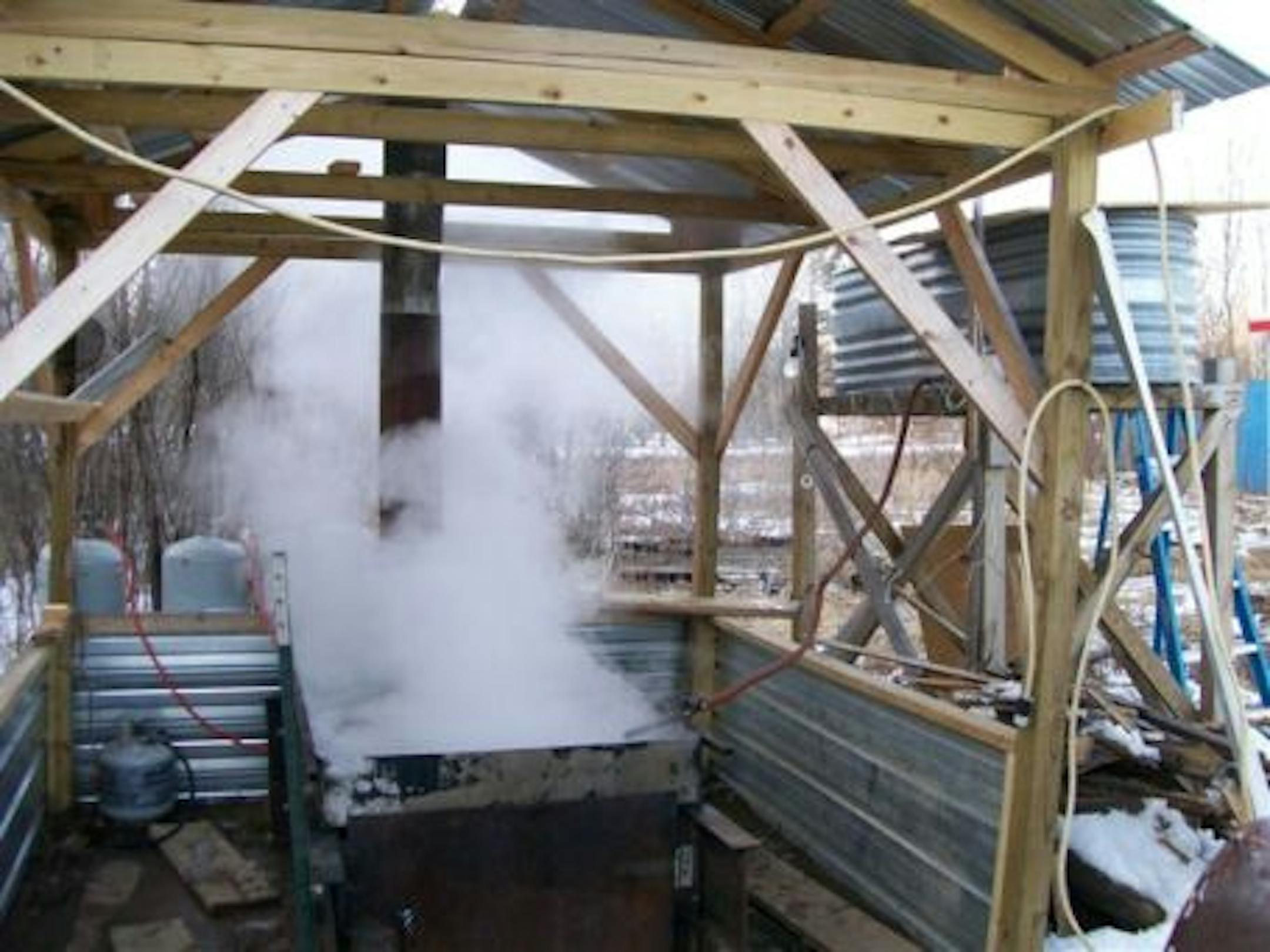 Last report here was about being too warm for the sap to run. Well, the freezing nights started last Friday, followed by extreme warm days, and as predicted, the sap run has been a "gusher". After collecting the first sap last Friday evening, the fire under the 39" x 84" boiling pan was lit early Saturday morning and just yesterday was turned off for the first time since. I've seen enough! But it will run without me another few days until the nights stay too warm.